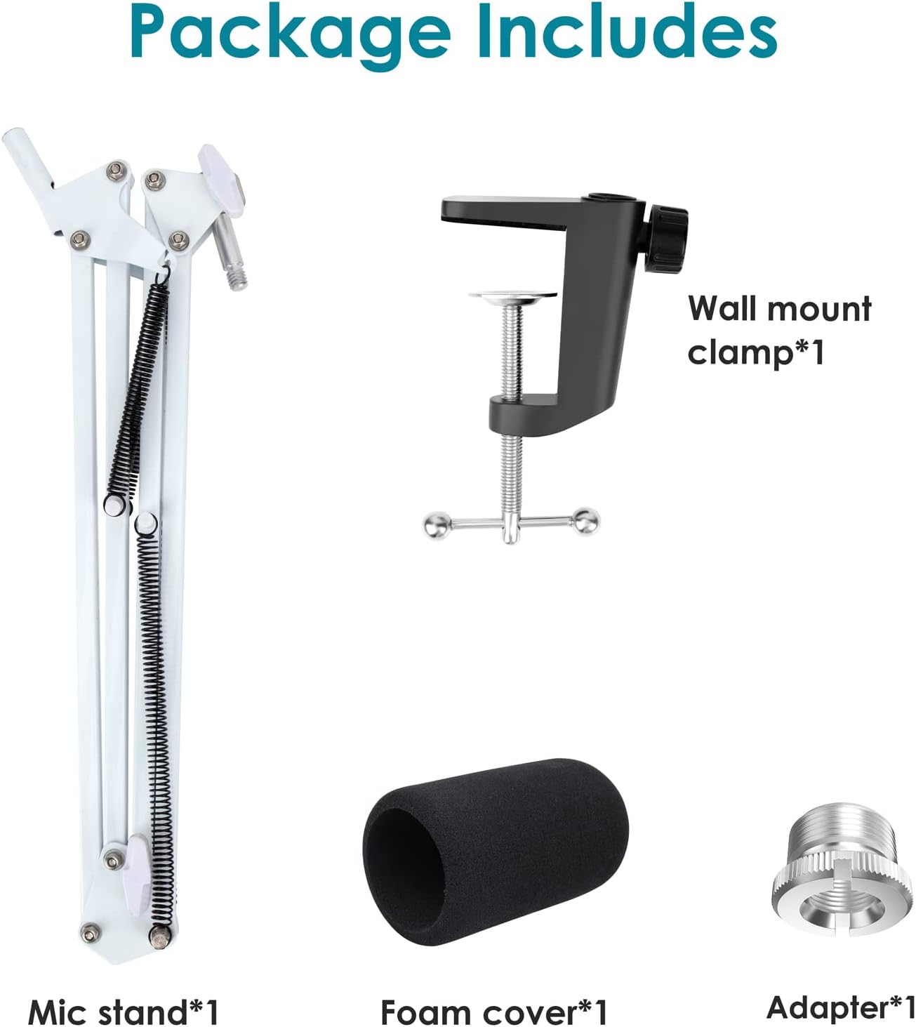 • All-in-One-Kombination – Paket enthält weissen QuadCast Mikrofonständer, Tischmontageklemme, 3/8 Zoll auf 5/8 Zoll Schraubadapter, Mikrofonabdeckungsschaum. Hinweis: QuadCast-Mikrofon nicht im Lieferumfang enthalten
