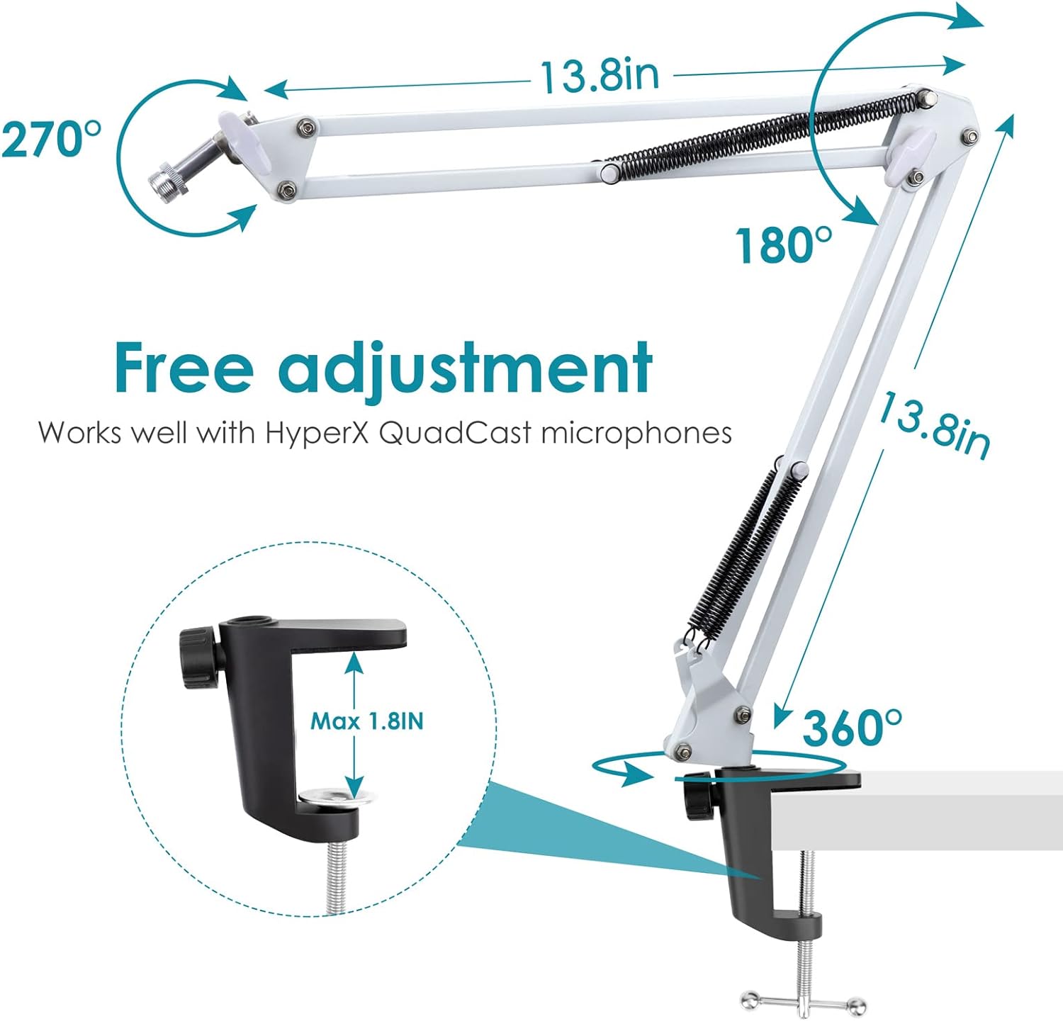 • Perfekter Effekt – weisser Aufhängungsarm hält Ihr QuadCast/QuadCast S Mikrofon in jeder gewünschten Position. Kein Durchhängen, nur steinsolide.