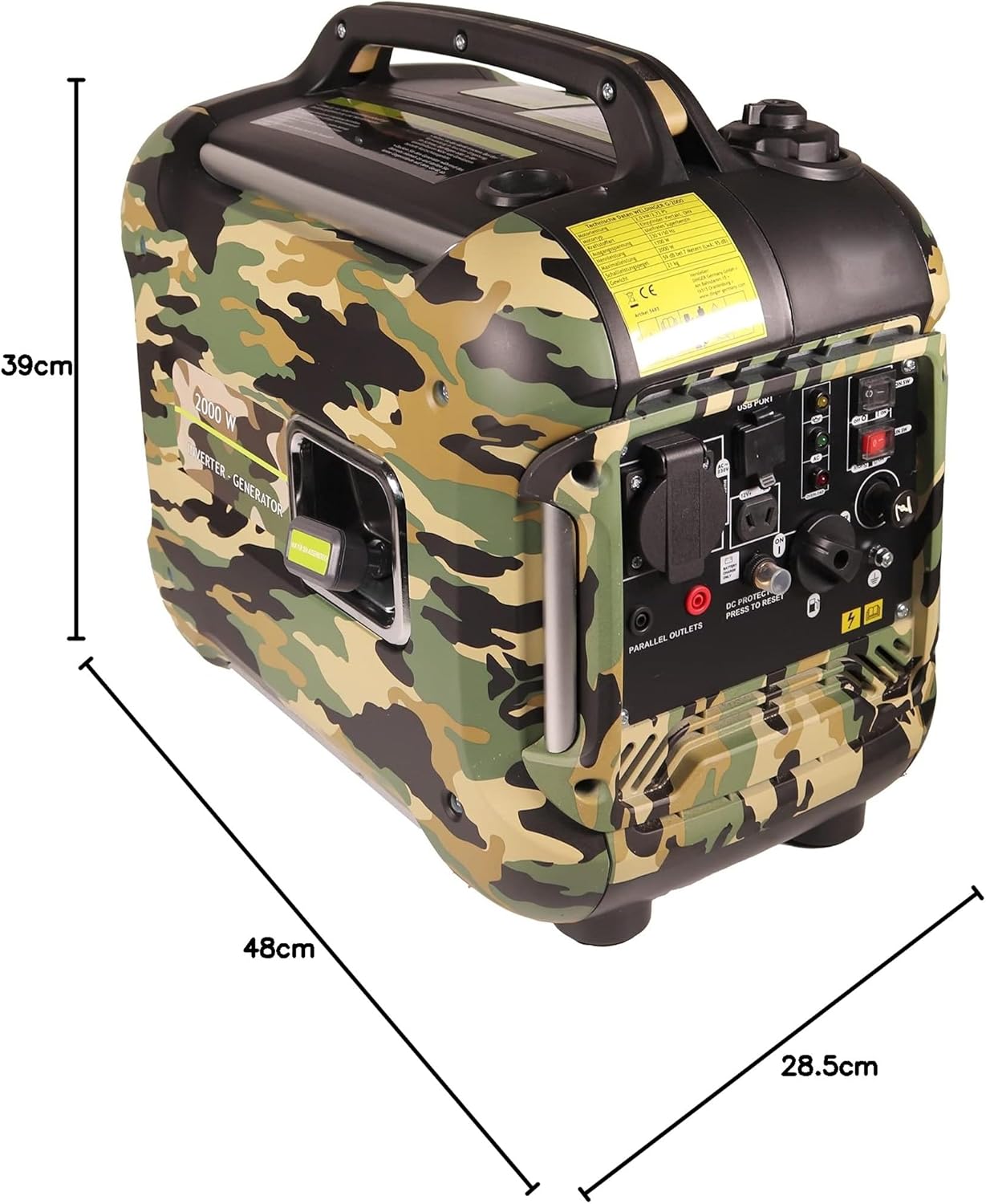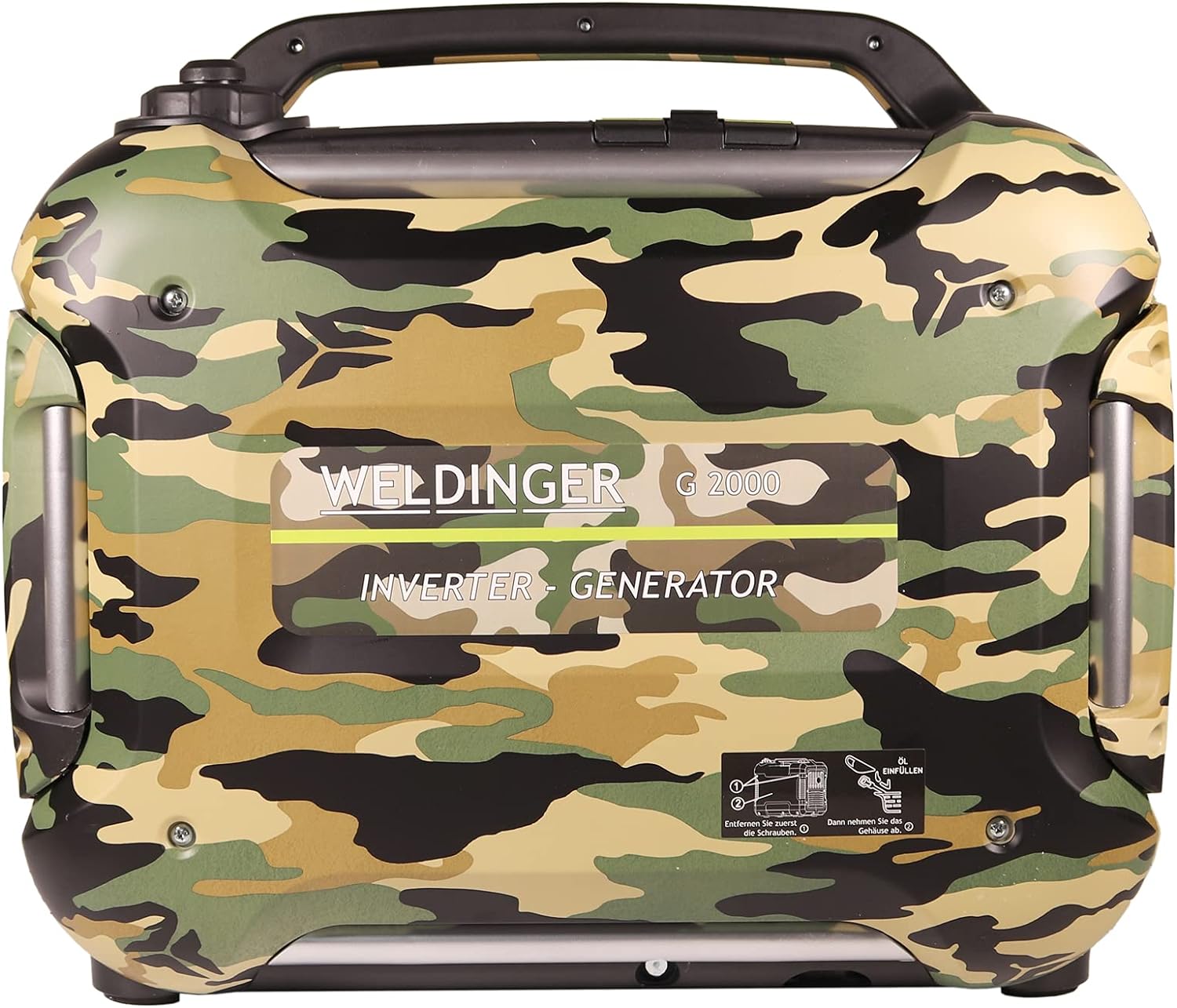 - der WELDINGER G-2000 in dezenter Camouflageoptik ist ein kraftvoller Stromgenerator für Camping oder Garten