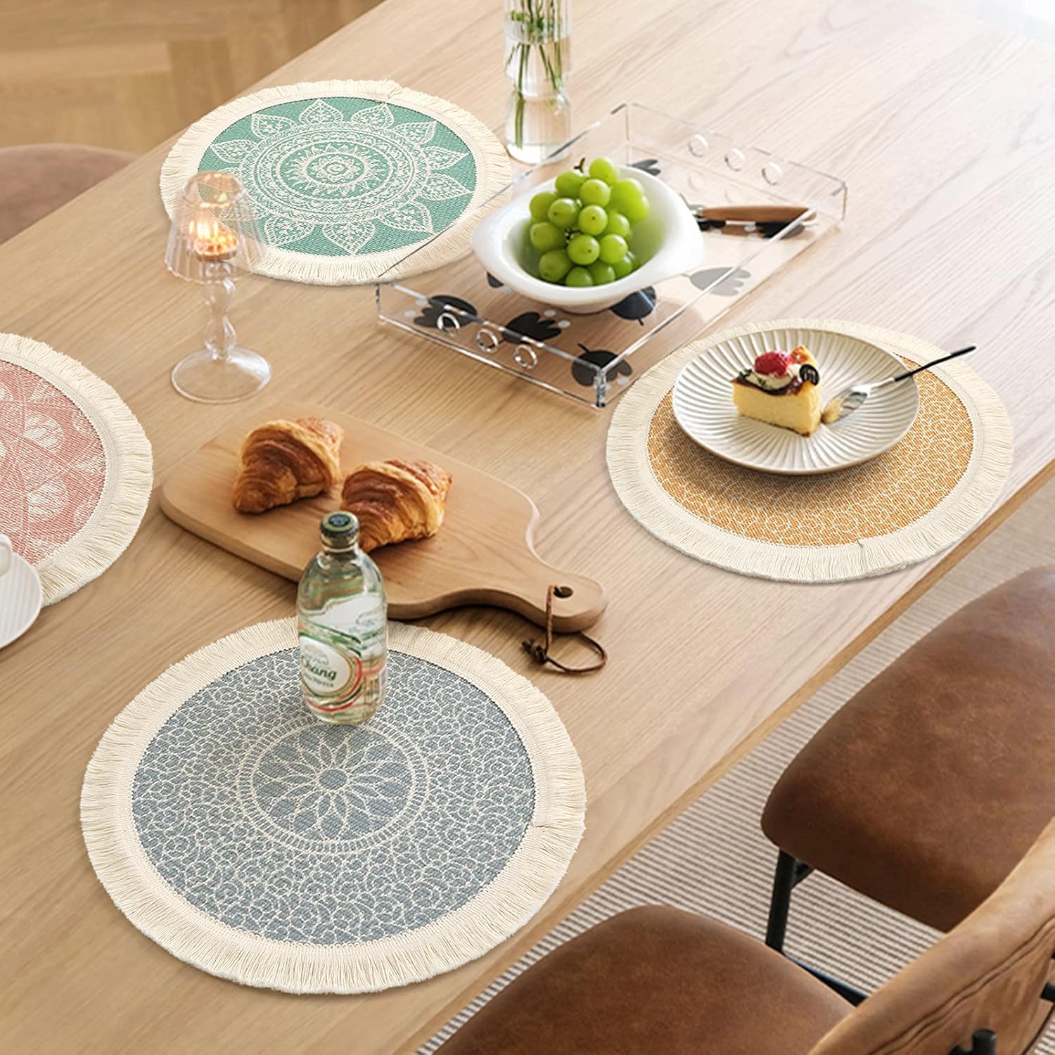 - đ´ăPerfekter Tischschutză: Unsere runden, charmanten Quasten-Tischsets sind hitzebeständig, rutschfest, verschleissfest, waschbar, verhindern effektiv VerschĂźttungen und Flecken, schĂźtzen Ihren Tisch und Ihre Tischdecke vor Kratzern oder anderen
