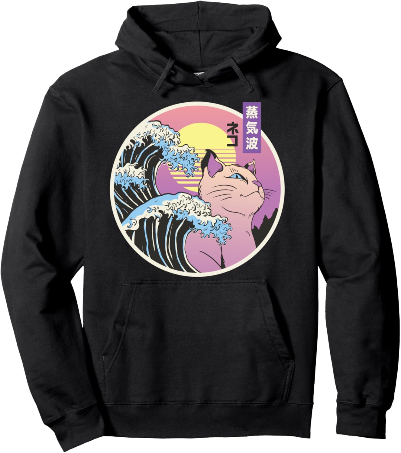PRODUKTBESCHREIBUNGEN Cooles Design für Katzenmütter mit Wellen, einer Katze und einem Retro-Sonnenuntergang, alles im Vaporwave-Stil. Perfekter Artikel für Männer und Frauen, die Katzen und Kätzchen lieben. Miau!
