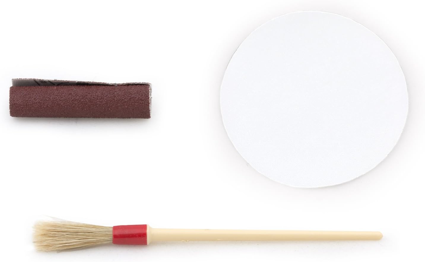 - Inhalt: 1 grosser Flicken aus neopren Durchmesser 10 cm, 1 Dose Kleber 125 ml, 1 Flasche Aktivierer 10 ml, 1 Pinsel, 1 Schleifpapier