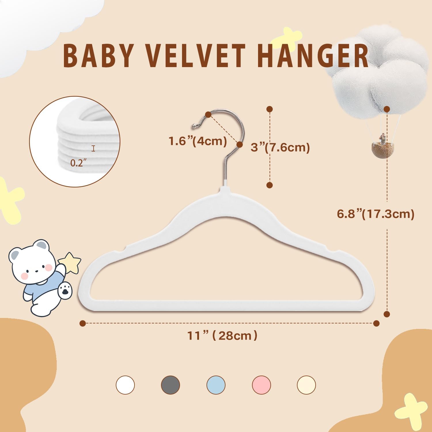 - STABILE KONSTRUKTION - Dieser Baby-Kleiderbügel ist aus Öko-PP-Material gefertigt und mit einer Schicht aus beflocktem Samt überzogen. Er hält über 2,3 kg und ist stark genug, um Röcke, Hosen, Mäntel, Kleider und andere Kleidung Ihres Babys