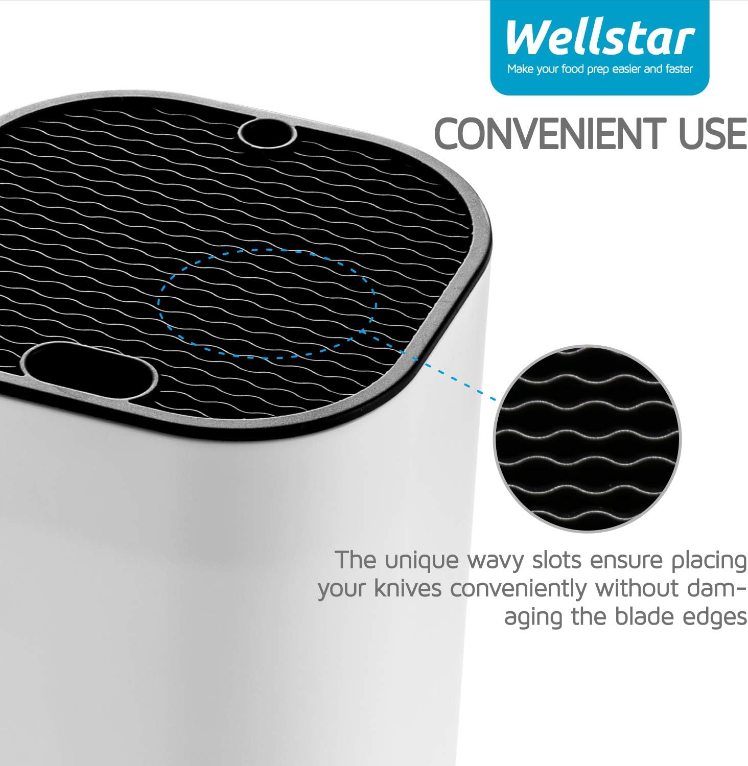 - 【SICHERES UND STABILSTES DESIGN】 Unser innovatives Doppelschicht-Messerhaltesystem ist der entscheidende Punkt, um sicherzustellen, dass die Messer fest im Block sitzen. Gleichmässig verteilte Schlitze trennen die Messerkanten, ohne sich zu berühren und zu kratzen. Das zusätzliche Gewicht im Boden hilft dabei, die niedrige Position des Schwerpunkts für diesen Block beizubehalten. Er wird niemals auf Ihrer Küchentheke umkippen