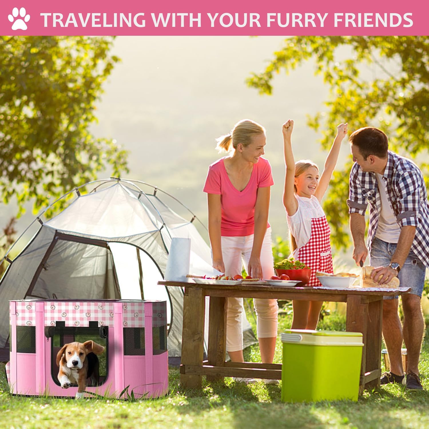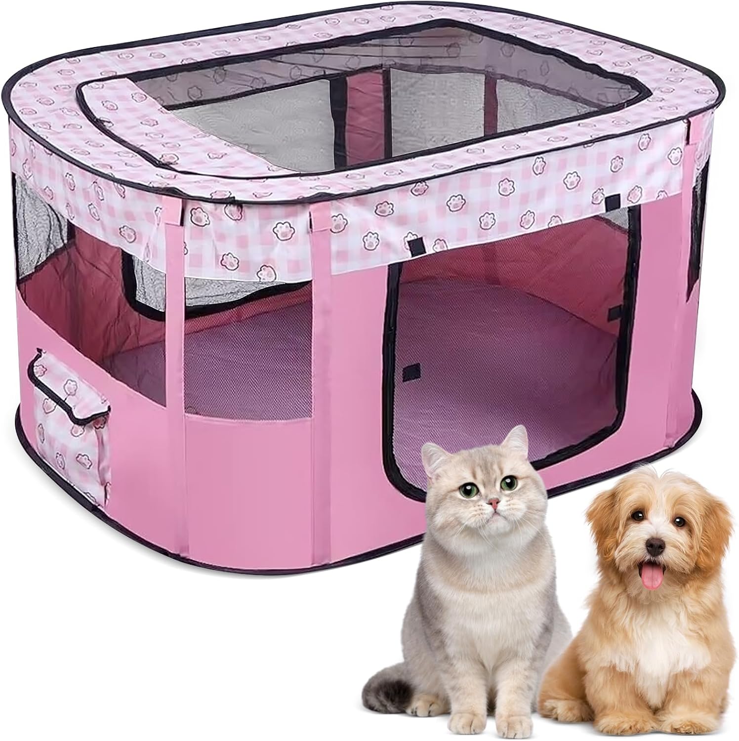 - 【Haustierfreundliches Design】 Der Hundezaun hat ein Zeltschalen-Design, das nicht nur die Sicherheit erhöht, sondern auch einen geschlossenen Raum für kleine Haustiere zum Spielen oder Ausruhen bietet; Die leichte Netztür und das Oberlicht sorgen