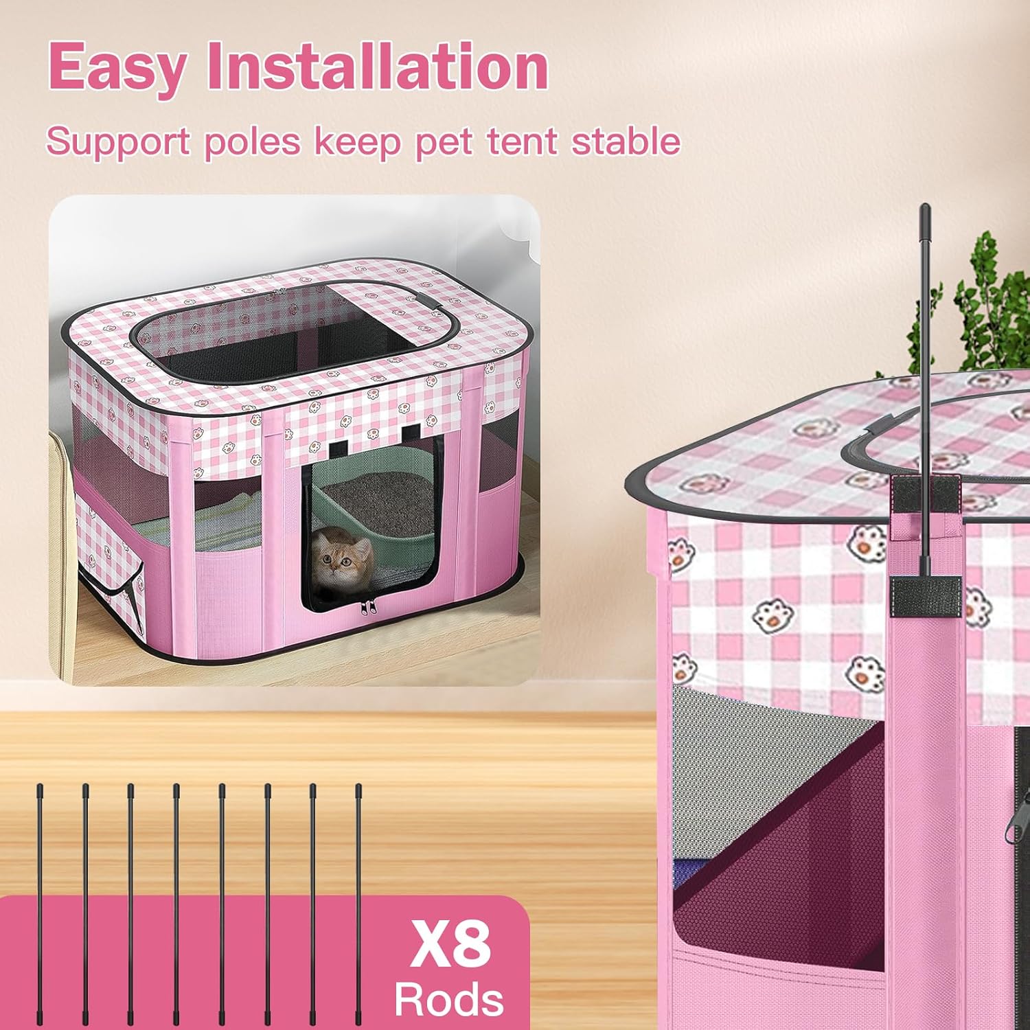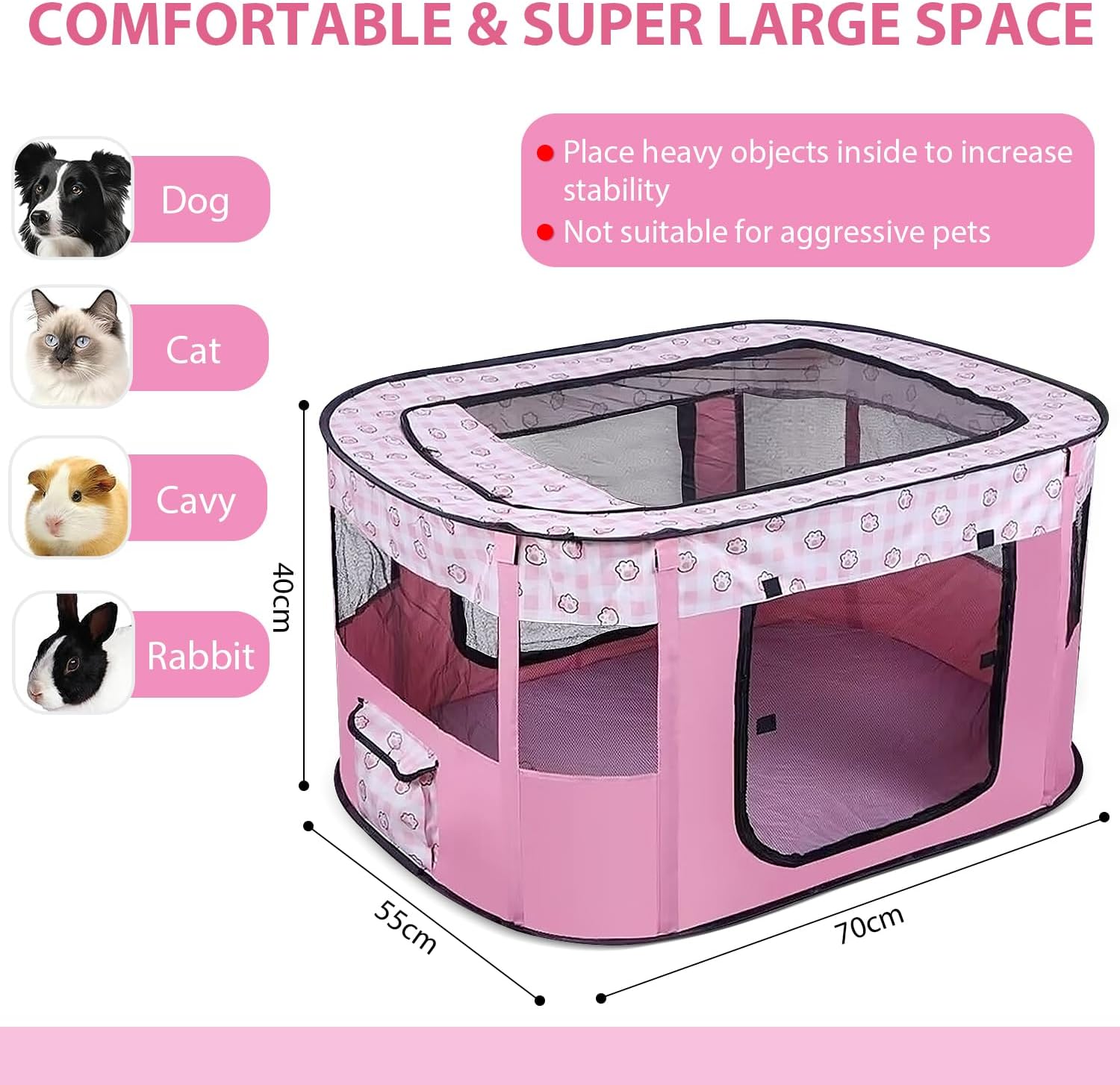 - 【Rechteckiger Hundezaun】 Unser Haustierzaun ist in 4 Farben erhältlich: Rosa/Braun/Grau/Lila, und die Grösse jedes Zeltes beträgt 70 x 55 x 40 cm. Haustier-Laufgitter bieten Ihren pelzigen Freunden viel Platz zum Spielen.