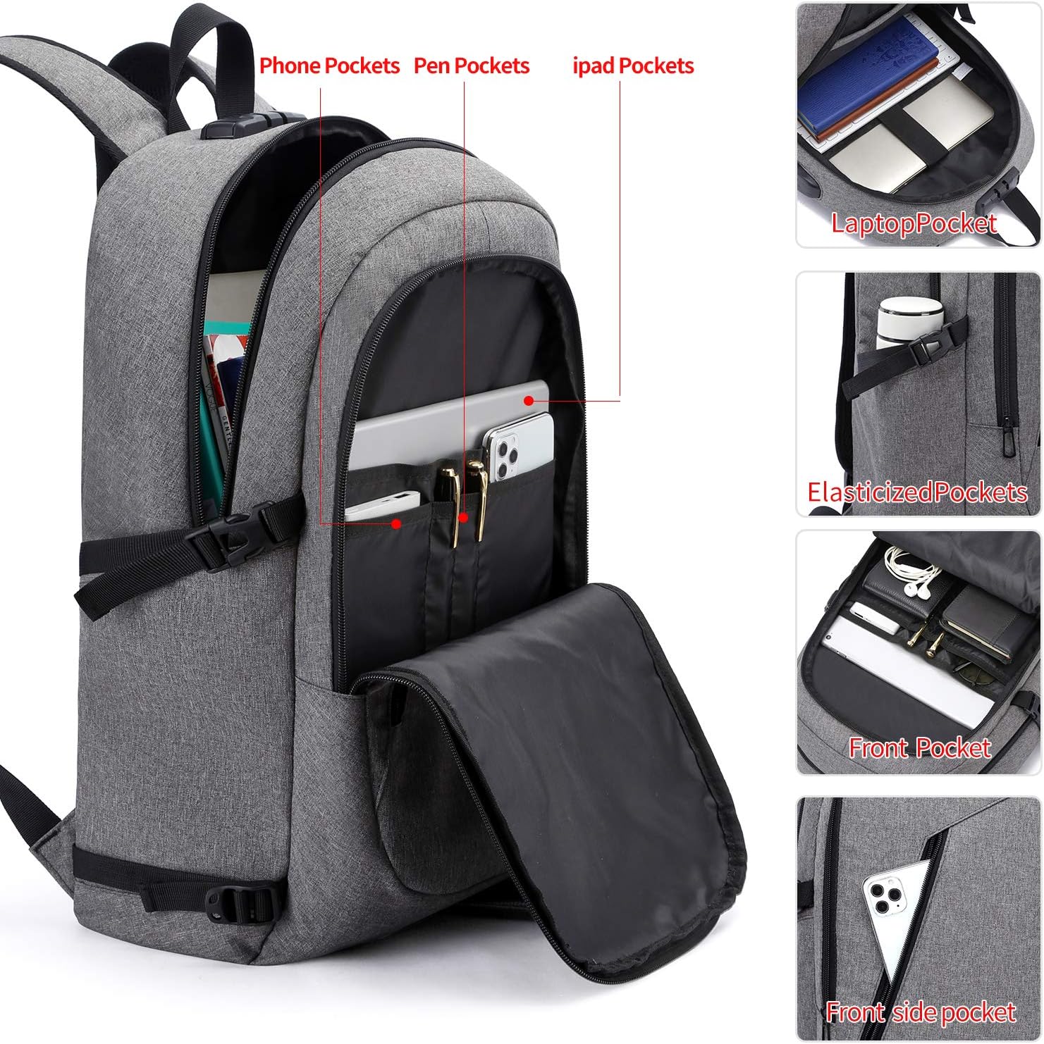 - ✈MEHRERE TASCHEN / GROssE KAPAZITÄT - Der Business Laptop Rucksack hat 3 Haupt- und 9 kleine Innentaschen, 2 Seitentaschen und 1 Gesässtasche, was den getrennten Stauraum für Laptop, iPhone, iPad, Stifte, Schlüssel, Geldbörse, Bücher, Kleidung