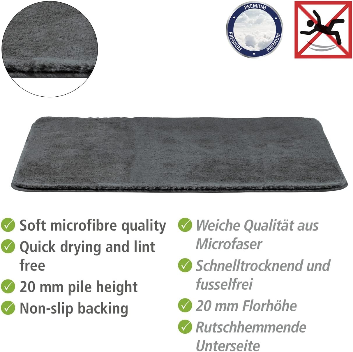 • Lieferumfang: 1 x Badematte Saravan in Anthrazit aus Mikrofaser (100 % Polyester) in weicher, dichter Qualität, als Badematte oder Duschvorleger, für Fussbodenheizung geeignet, Masse (B x T): 50 x 80 cm
