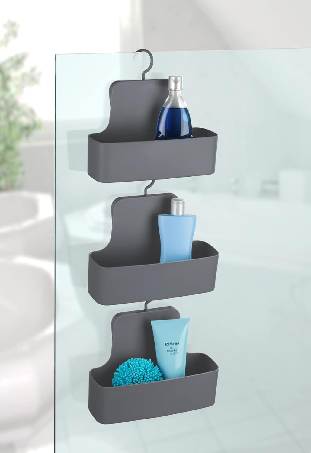 - Lieferumfang: 1 x Dusch-Caddy Barcelona von WENKO, inkl. Haken zur Aufhängung, (B x H x T): 26 x 24 x 9 cm, Farbe: Anthrazit