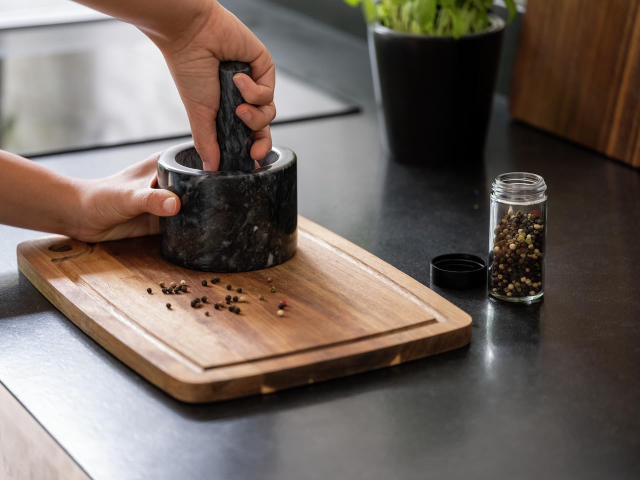 - Mörser mit Stössel für effizientes Zermahlen von Kräutern und Gewürzen
