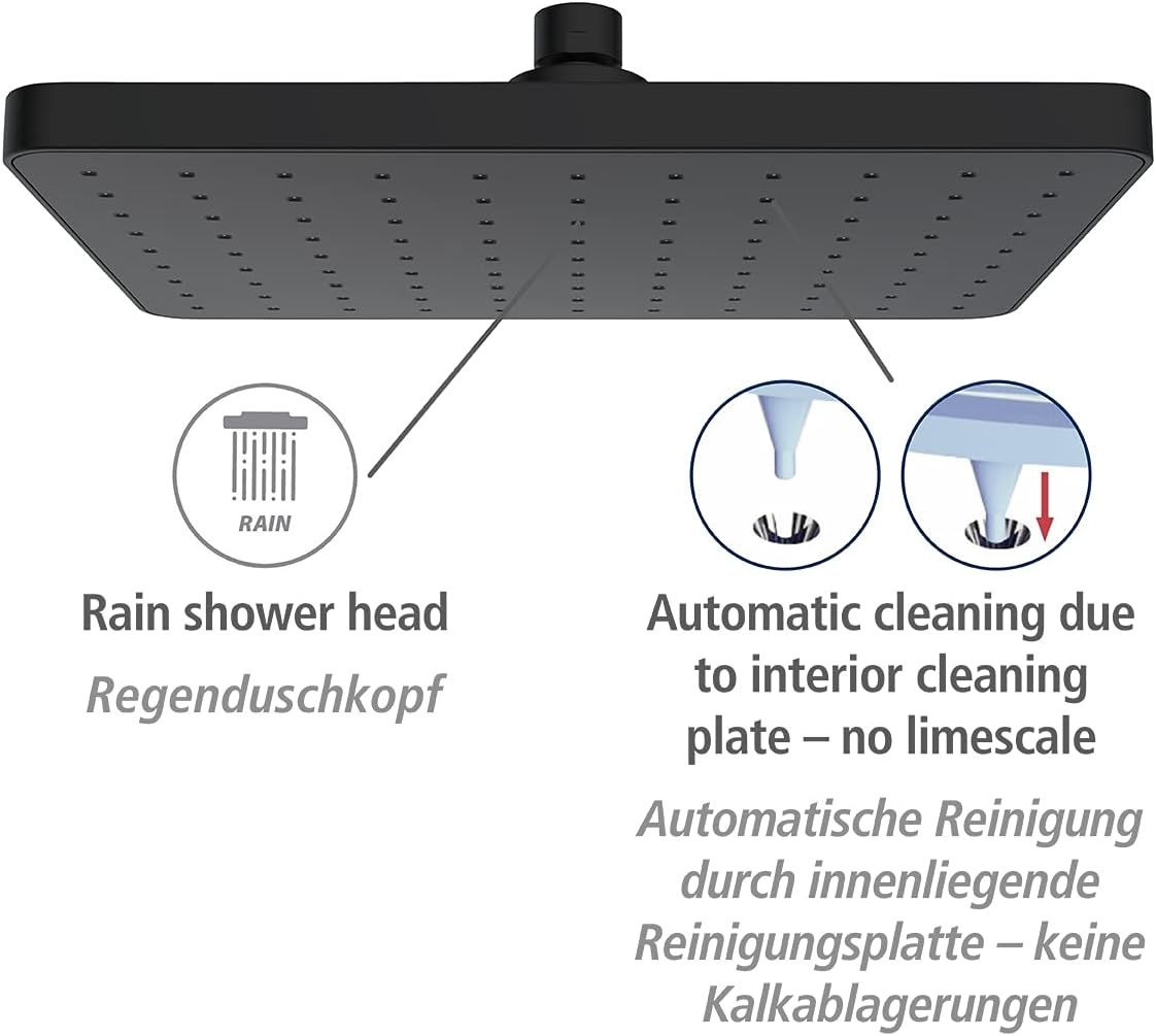 WENKO Automatic Clean Regenduschkopf, Anti-Kalk Funktion, eckiger Brausekopf mit automatischem Reini