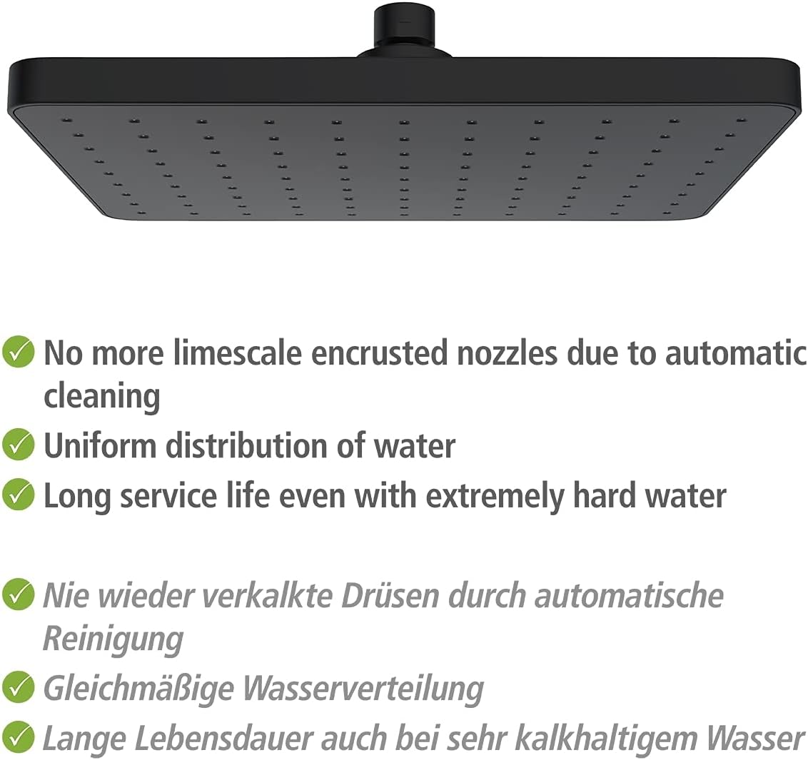 • Lange Lebensdauer: Dank der Anti-Kalk Funktion bleibt die gleichmässige Wasserverteilung dauerhaft erhalten. Das bedeutet für Sie kein Komfortverlust durch verstopfte Düsen bei langer Lebensdauer. So kommen Sie lange in den gleichbleibenden Genuss