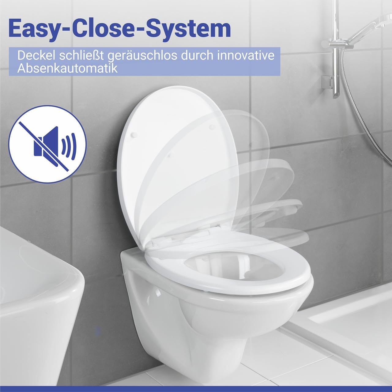 - Mit Absenkautomatik – Die integrierte Easy-Close Absenkautomatik sorgt dafür, dass der WC-Deckel leise und sanft schliesst – kein lautes Zuschlagen mehr