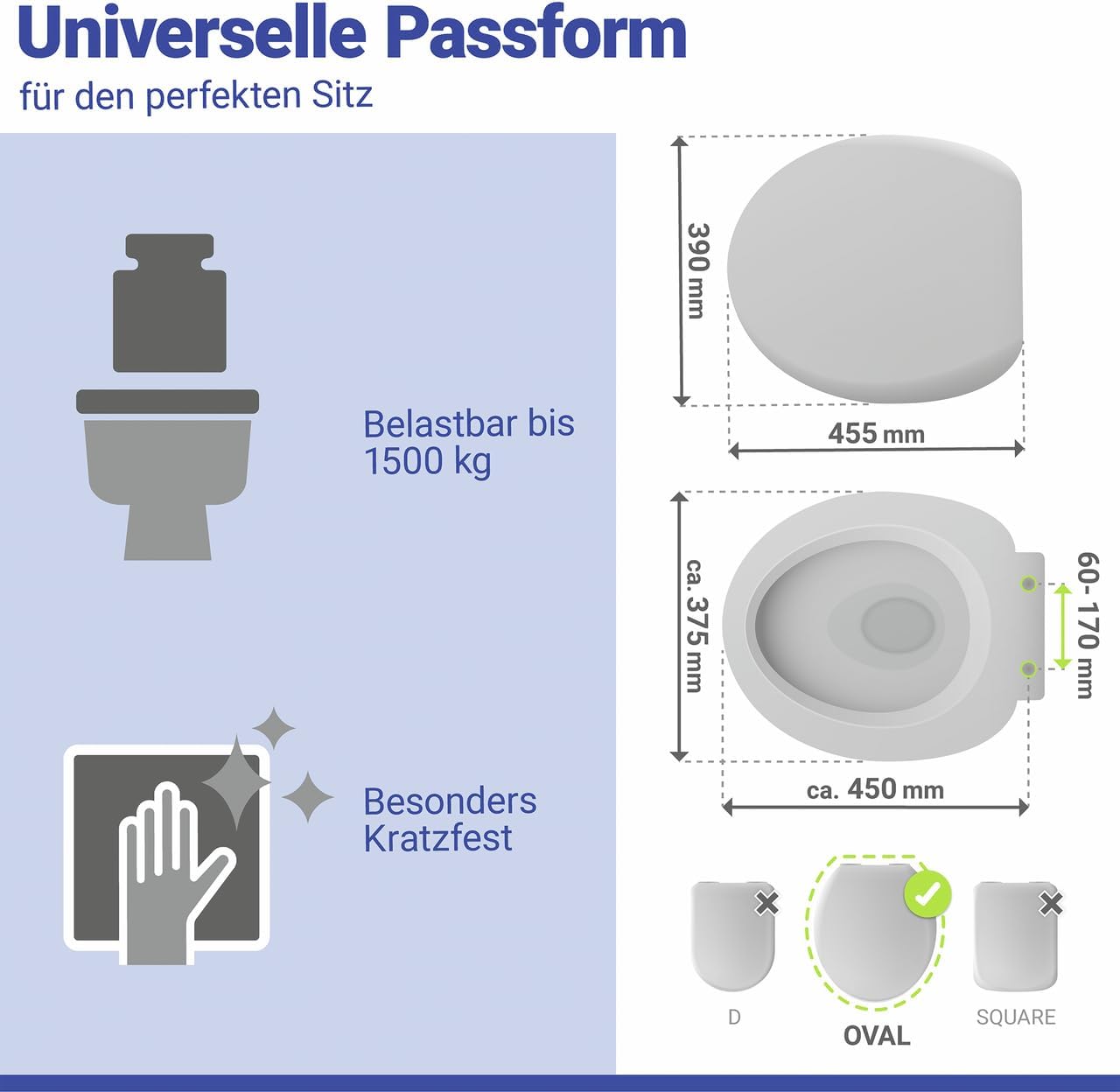 - Sicherer Halt & kein Verrutschen – Spezial-Dübel mit Metall-Kipp-Funktion verhindern zuverlässig das Verrutschen des Toilettensitzes und sorgen für einen festen Sitz auf der Toilette