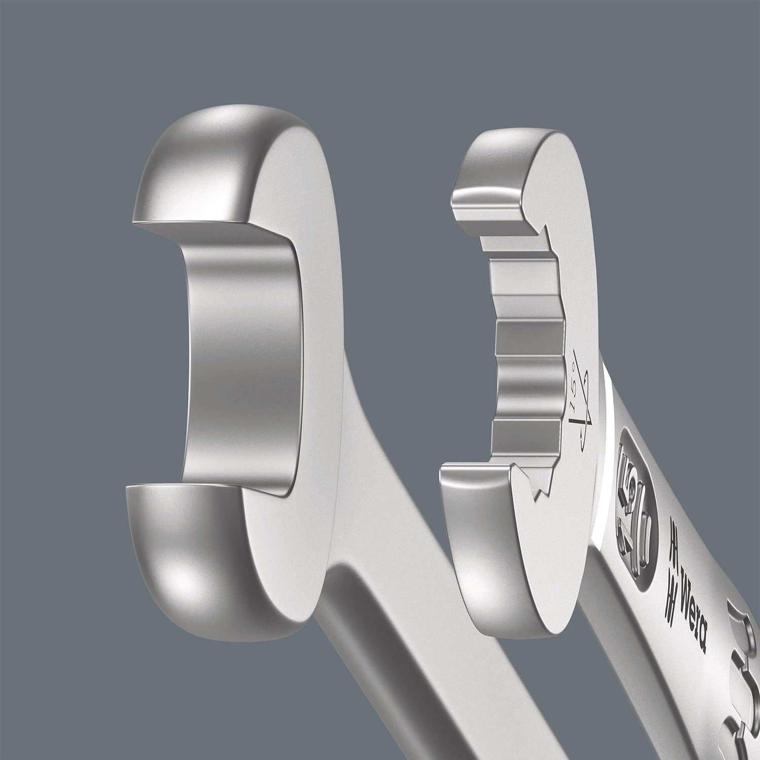 • Die spezielle Maulgeometrie erweitert die Ansetzmöglichkeiten des Werkzeugs