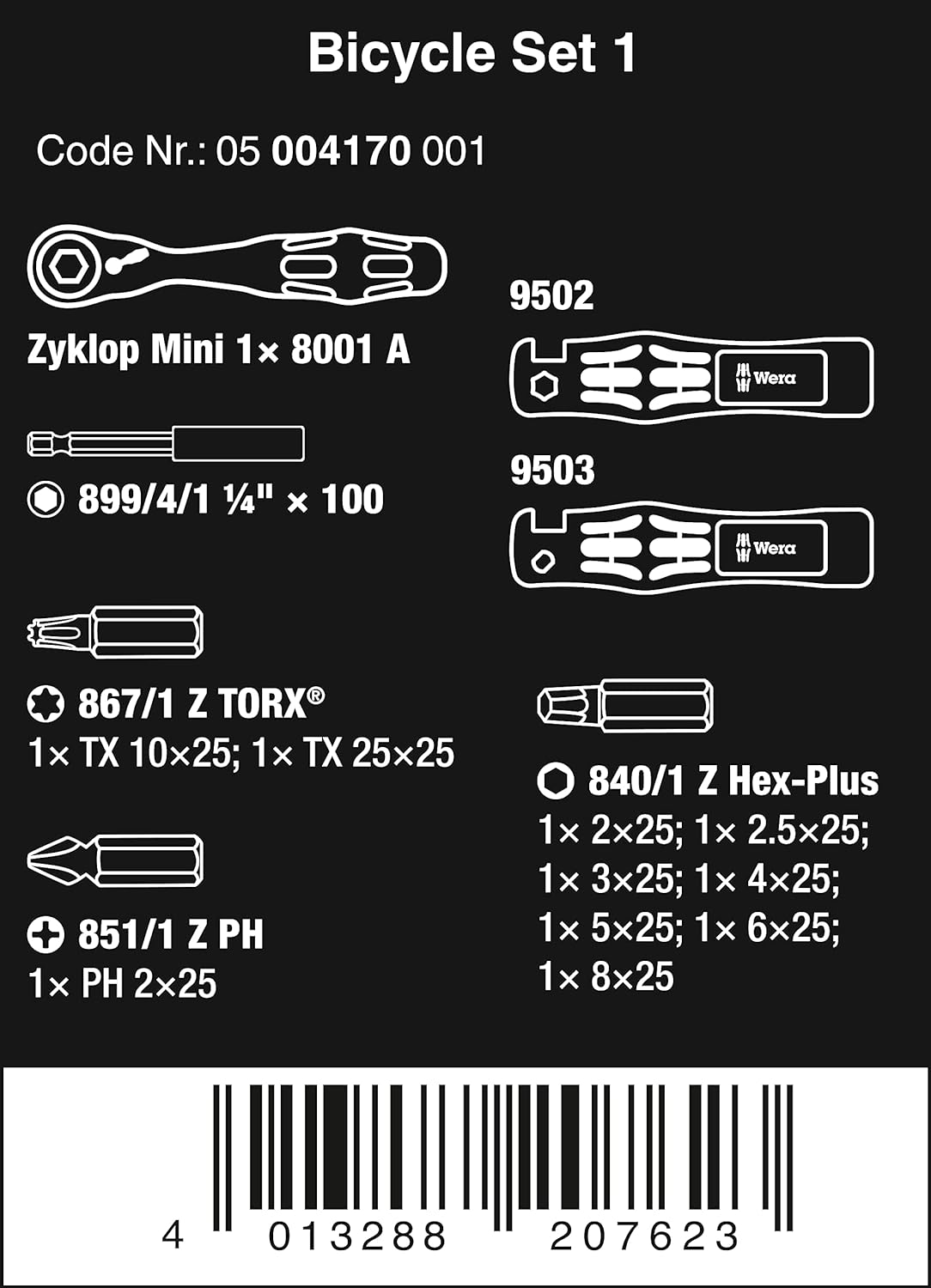 Wera 05004180001 Bicycle Set Torque 1 Fahrrad Drehmomentschlüsselsatz, Schwarz, 16-Teilig & 05004170
