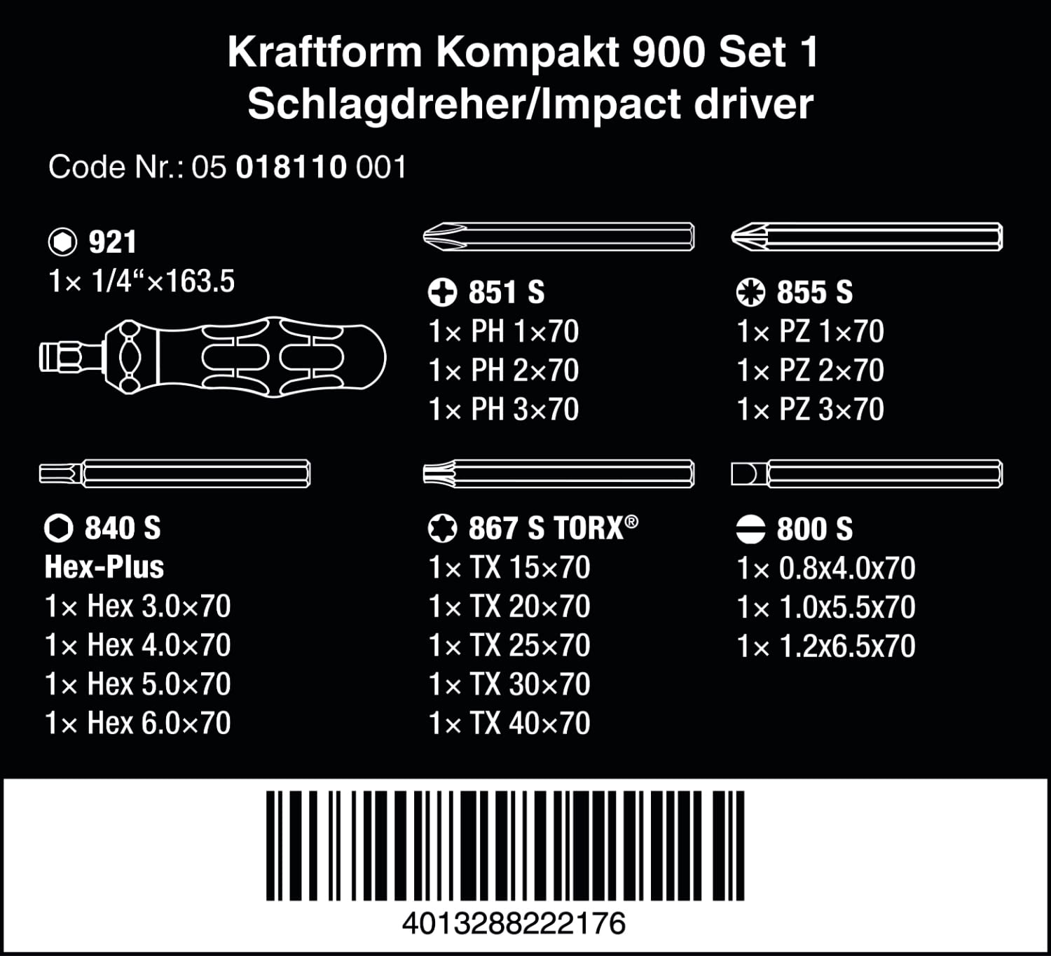- Kompakter und robuster Wechselklingen-Schraubendrehersatz mit zuschaltbarer manueller Schlagschraubfunktion