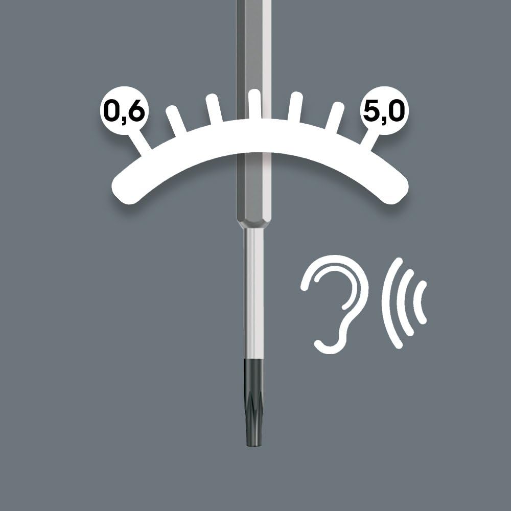 - Deutlich hör- und spürbares Überrasten beim Erreichen des eingestellten Drehmoments