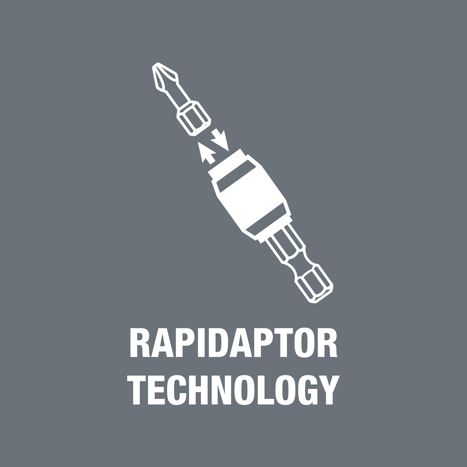 • Mit Rapidaptor Universalhalter, Holzspiralbohrer-Bits und Bits mit 1/4" Antrieb