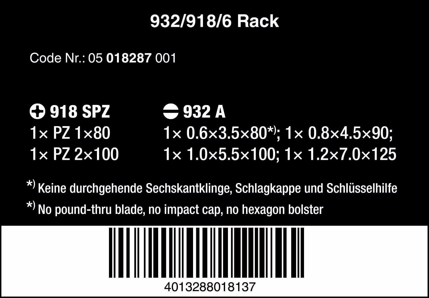 Wera Schraubendrehersatz 932/918/6 Kraftform Plus: Der Schraubmeissel + Rack, 6-teilig, 05018287001,