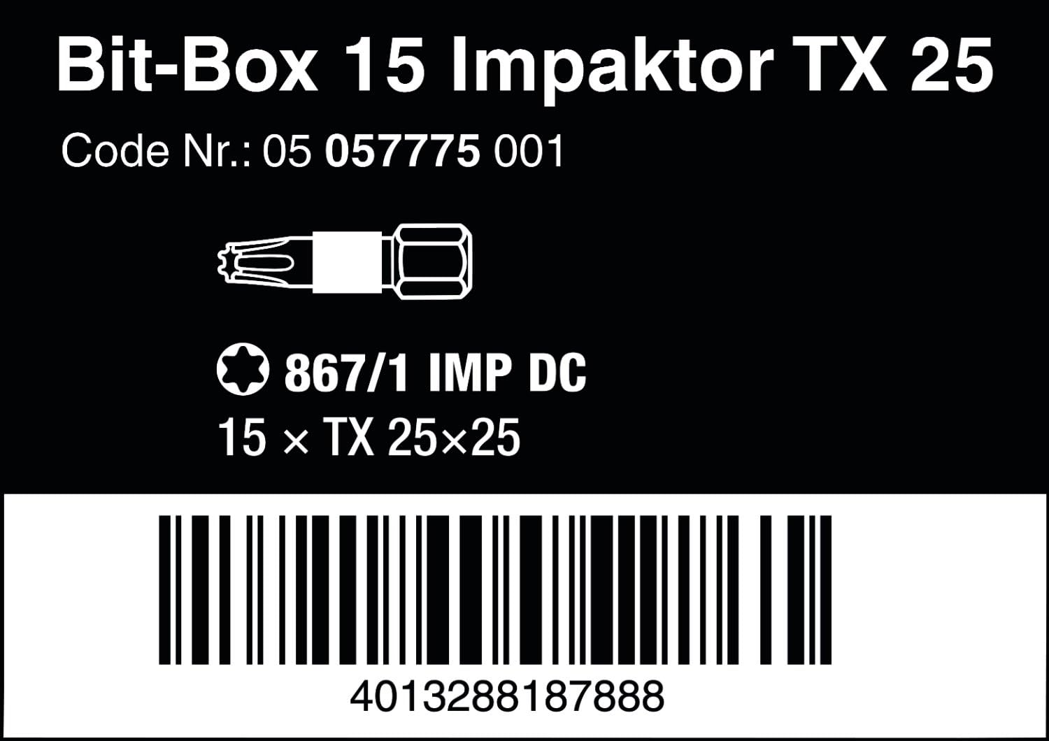 Wera Bit-Sortiment, Bit-Box 15 Impaktor TX 25, 15-teilig, 05057775001