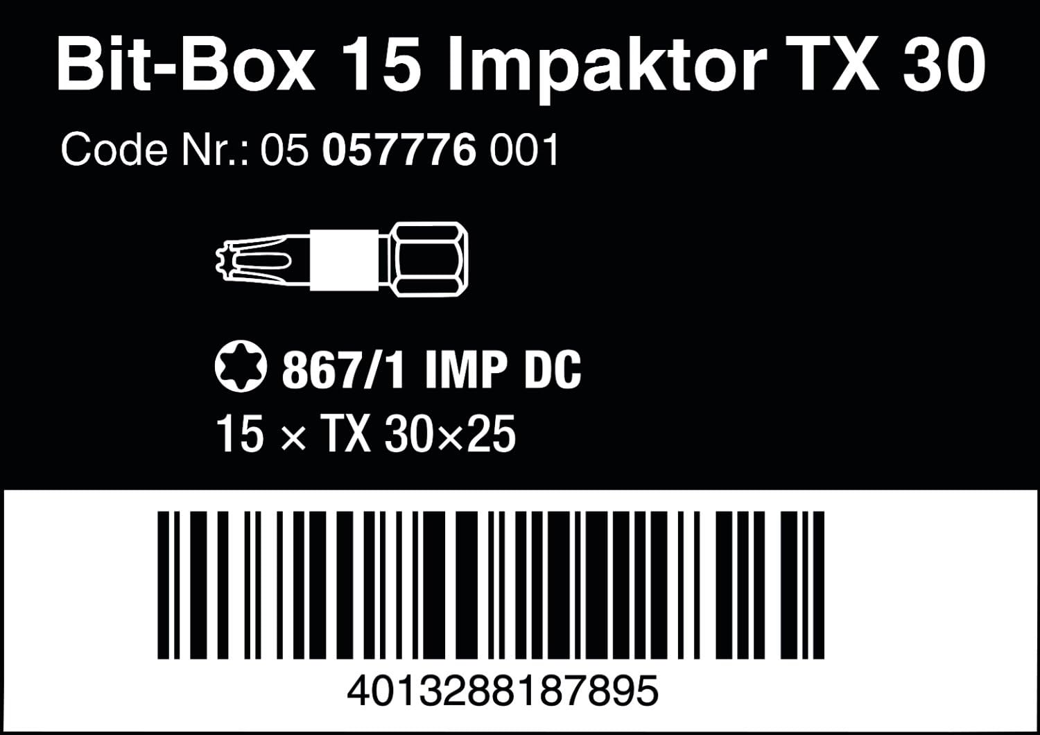Wera Bit-Sortiment, Bit-Box 15 Impaktor TX 30, 15-teilig, 05057776001, 7.4 x 6.9 x 2 cm