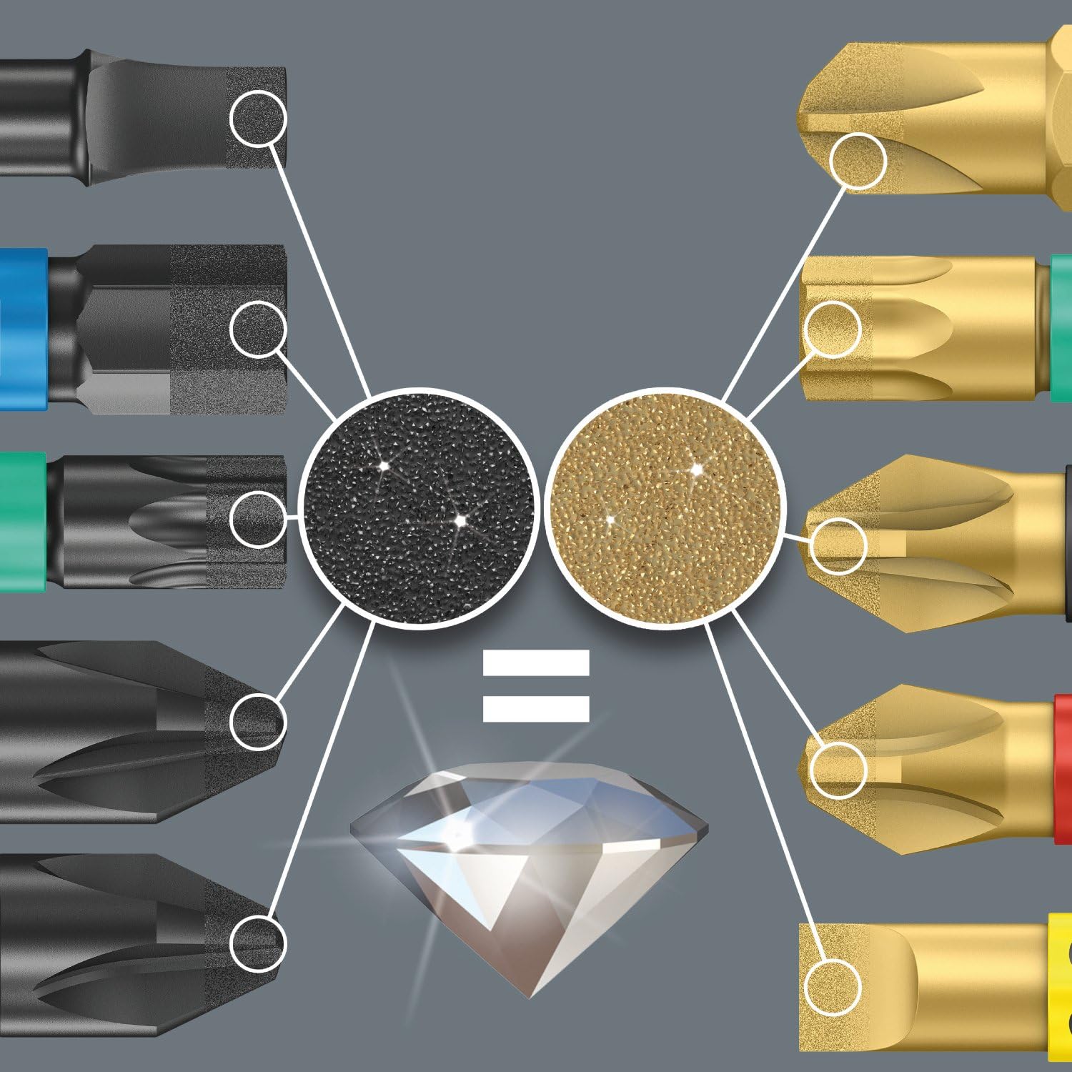 • Diamantbeschichtung für sicheren Sitz in der Schraube