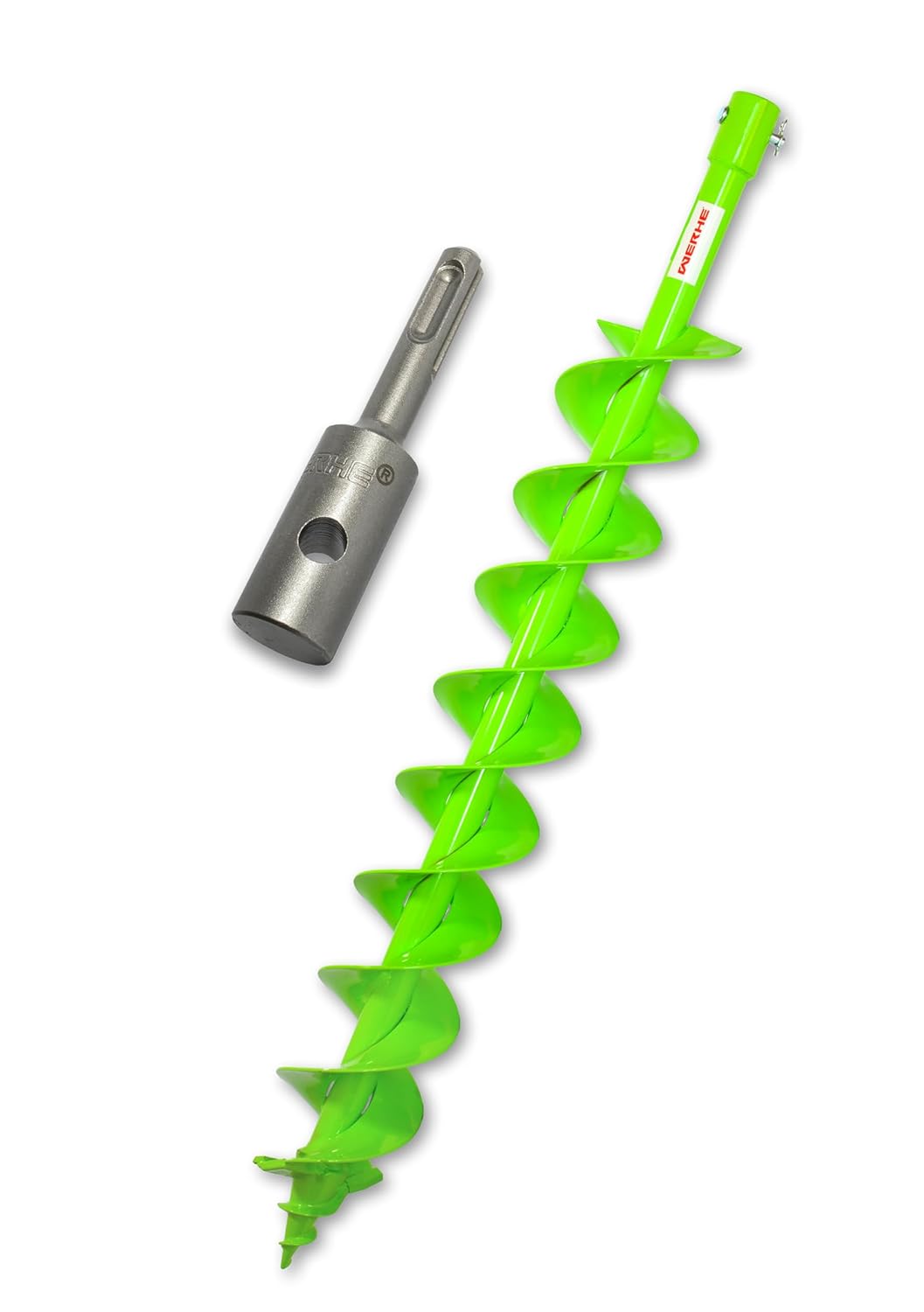 - Der Erdbohrer kann mit einem Bohrhammer ohne grossen Aufwand verschiedene Löcher bohren. Selbst in Böden mit Steinen und Wurzeln ist ein Durchrutschen dank der SDS Plus-Aufnahme nicht möglich.