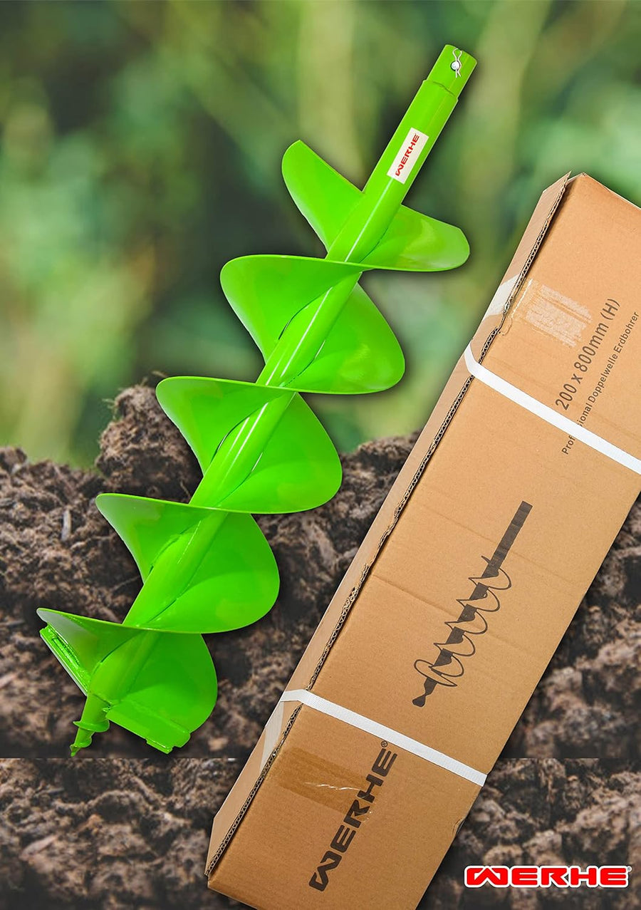 WERHE® Profi Bohrer Starker Stahl, Erdbohrer für bohrmaschine 200 mm Doppel-Welle extrem robust - Pf