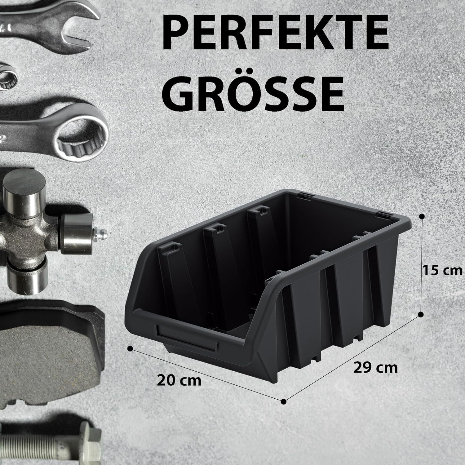 - VOLUMINÖS: durch die hohen Ränder der Stapelbox passen viele kleine Teile und Werkzeuge hinein. Dank ihres stapelbaren Designs können Sie wertvollen Stauraum in Ihrer Werkstatt effizient nutzen. So haben Sie mehr Platz zum Arbeiten und weniger