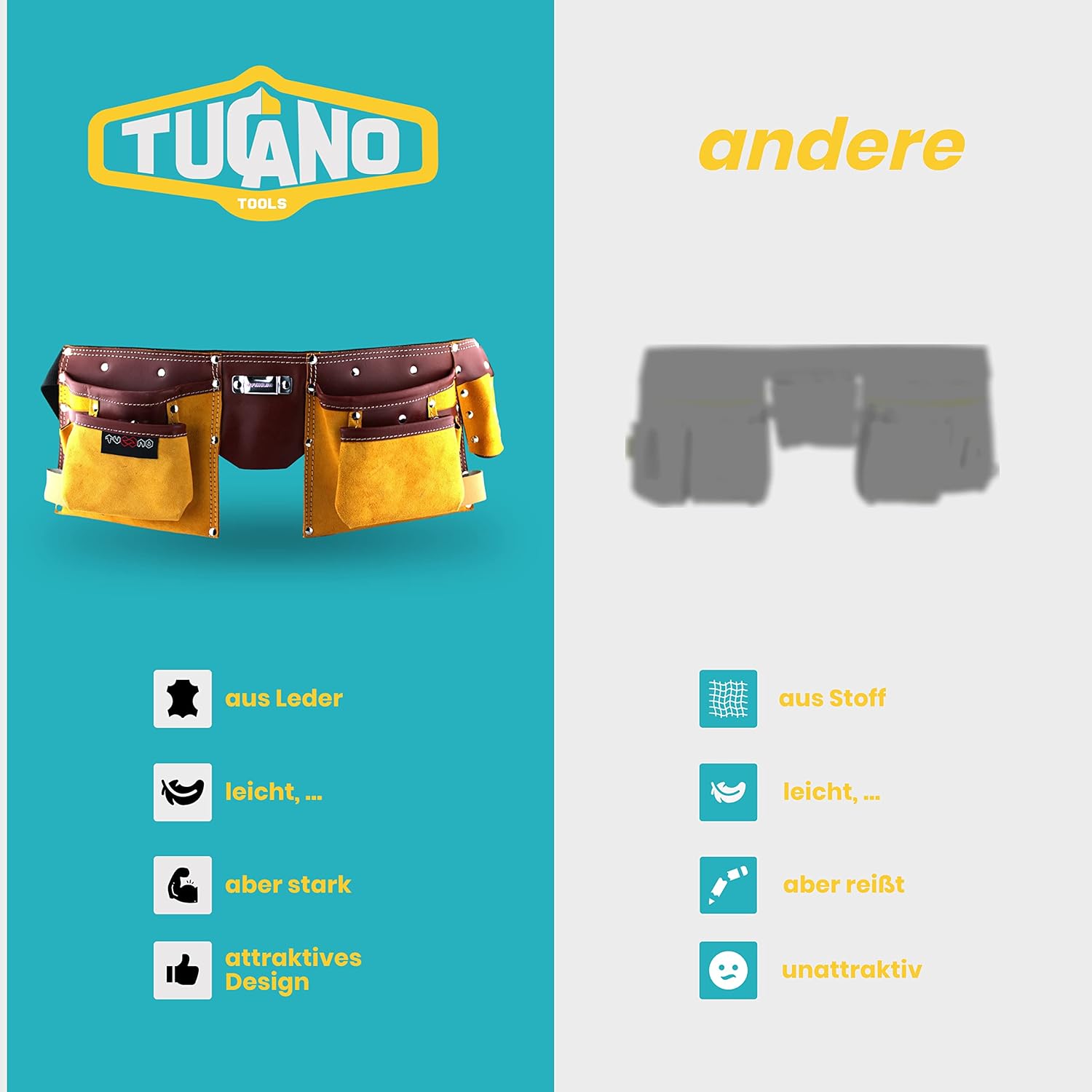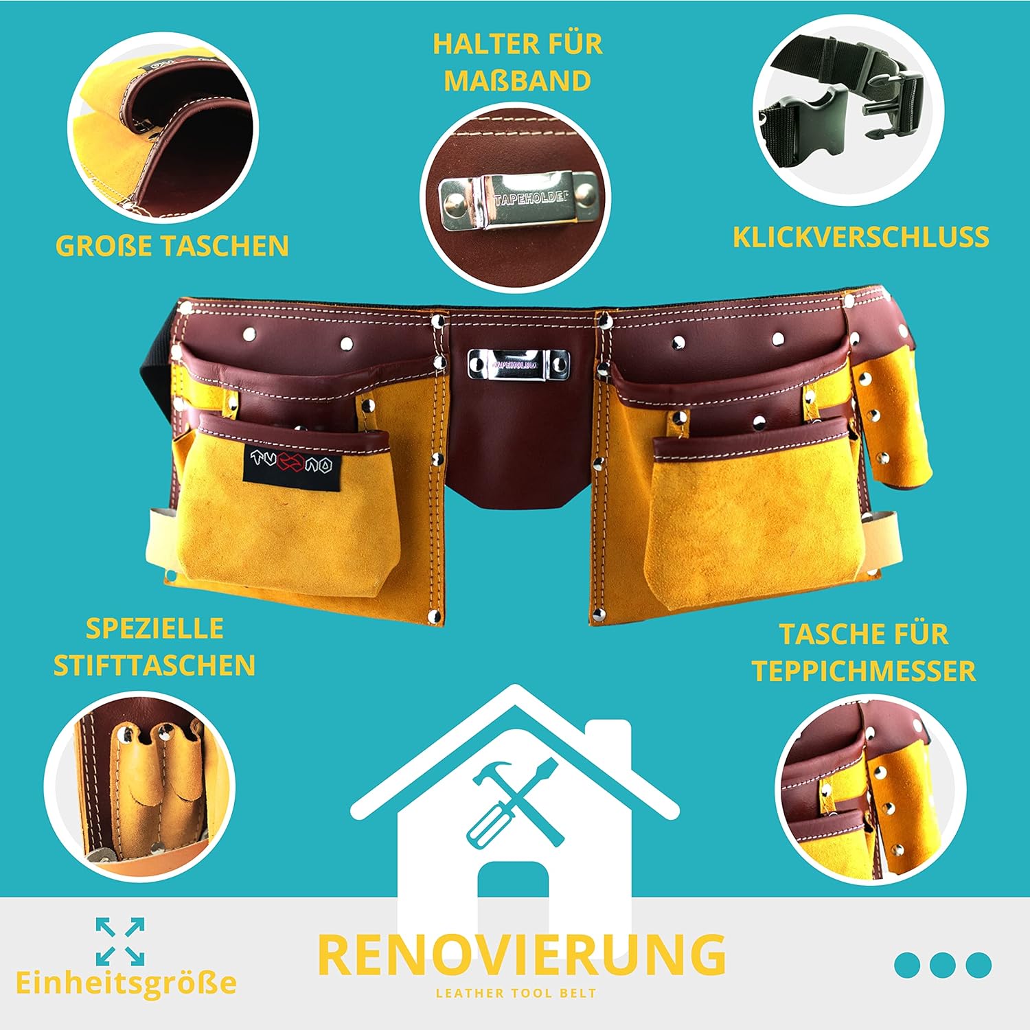 - QUALITÄT LEDER - aus Vollhautleder. Dieser Werkzeuggürtel kann Jahre des Dienstes aushalten.