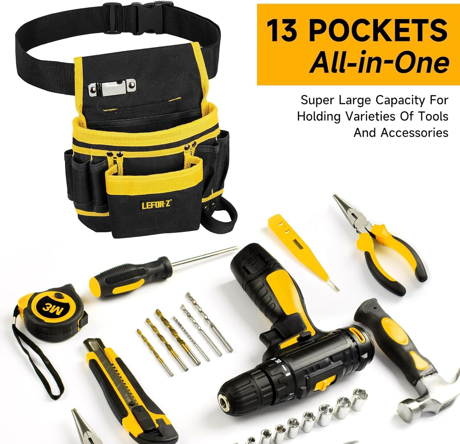 Werkzeuggürtel Herren,Werkzeugtasche gürtel mit 13 Taschen,Magnetische Werkzeugtasche für Männer,Abn