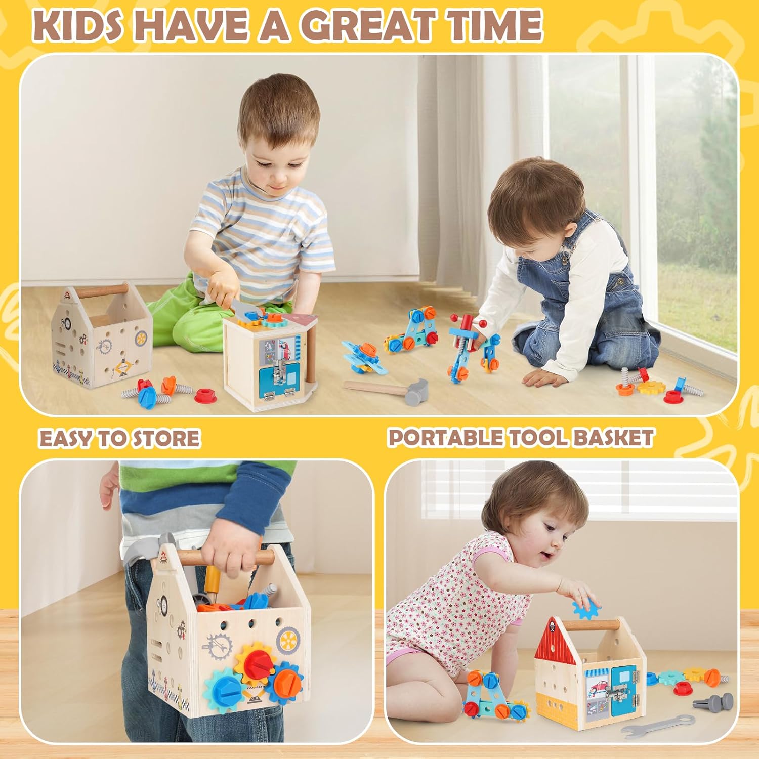 - Werkzeugkoffer Kinder: Das Werkzeug Kinder umfasst Hämmer, Schraubenschlüssel, Schraubenzieher, Sägen, Zahnräder, Schrauben, Muttern und anderes Montessori-Spielzeug mit Anleitung. Werkzeug kinder ab 3 4 jahre.