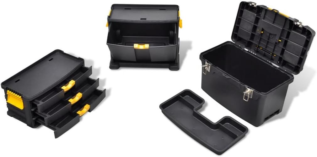 • Es hat ein oberes Fach, ein unteres Fach und ein Mittelteil mit 3 Schubladen.Die 3 mittleren Schubladen sind für Sie, um eine Unterteilung von kleinen Werkzeugen wie Nüsse und Schrauben zu identifizieren.