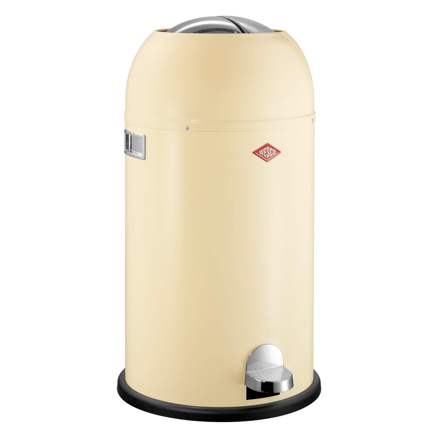 - Das Besondere: Die Öffnung oben. Sie schliesst geruchs- und geräuscharm dank eingebautem Dämpfer und wird über eine robuste Tretmechanik bedient.