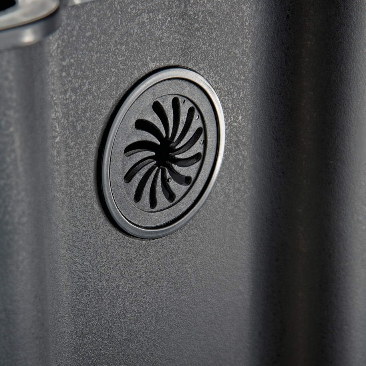 - Der Edelstahldeckel schliesst dank eines eingebauten Dämpfers nahezu geräuschlos und verschliesst den Abfall sicher. Zusätzlich kann der Deckel in der offenen Stellung arretiert werden