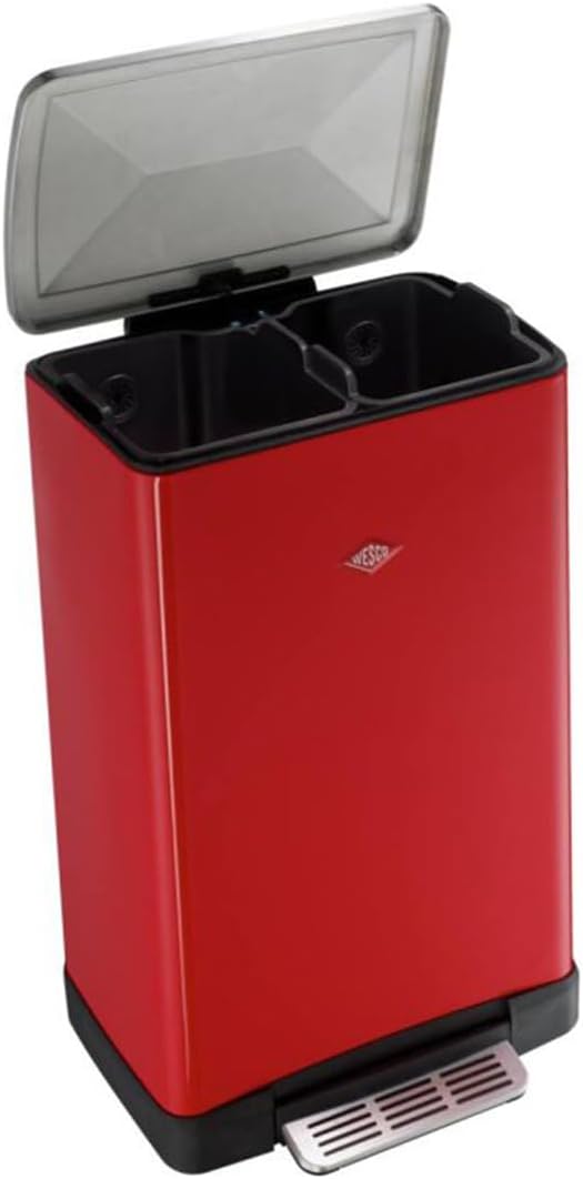- Lieferumfang: 1x WESCO Abfallsammler Big Double Boy aus pulverbeschichtetem Stahlblech in der Farbe rot, 2x 18 Liter Volumen, arretierbarer Deckel, Befestigung für Müllbeutel