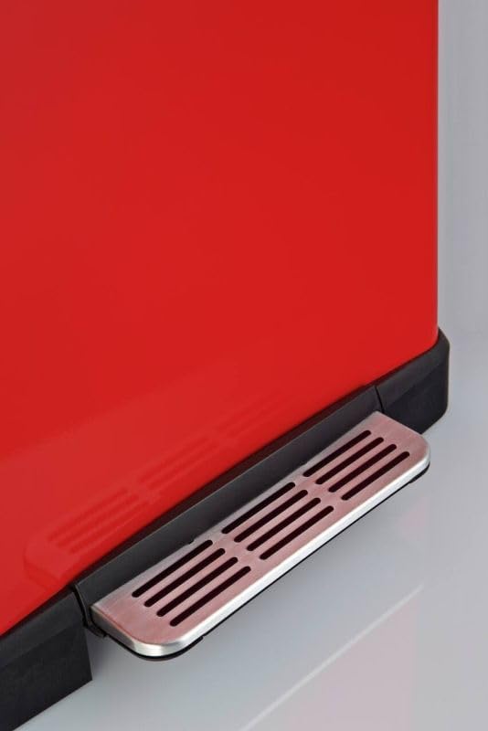 - Der grosszügige Fusstritt aus Edelstahl garantiert problemlose Bedienung und freie Hände und der untere Kunststoffrand schont den Fussboden, sodass man den Mülleimer auch verrücken kann ohne den Boden zu verkratzen