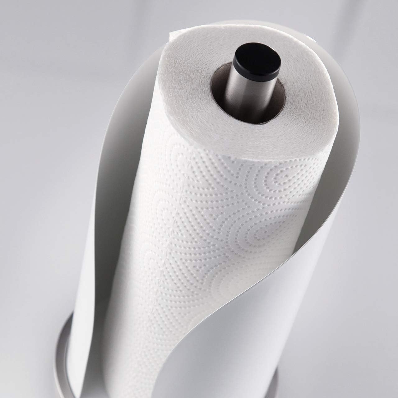 - Der Rollenhalter für handelsübliches Küchenpapier hat einen standfesten Edelstahl-Sockel. Die Papierolle wird auf die Edelstahl-Halterung in der Mitte gesteckt und kann Blatt für Blatt abgerissen werden