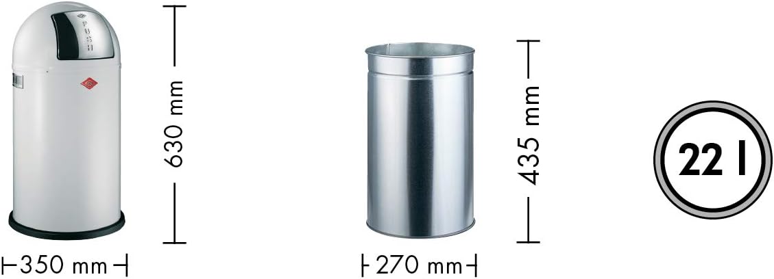 - Fassungsvermögen des Kunstoffinneneimers: 22 Liter