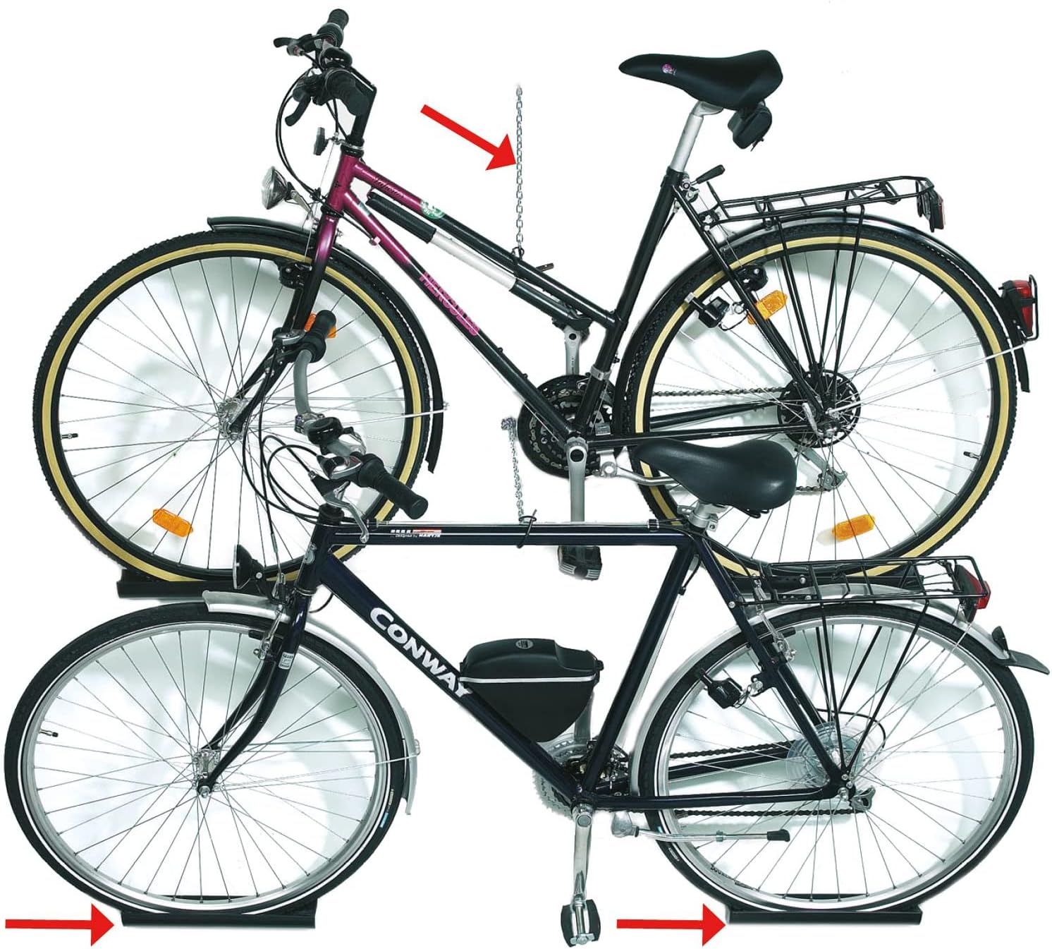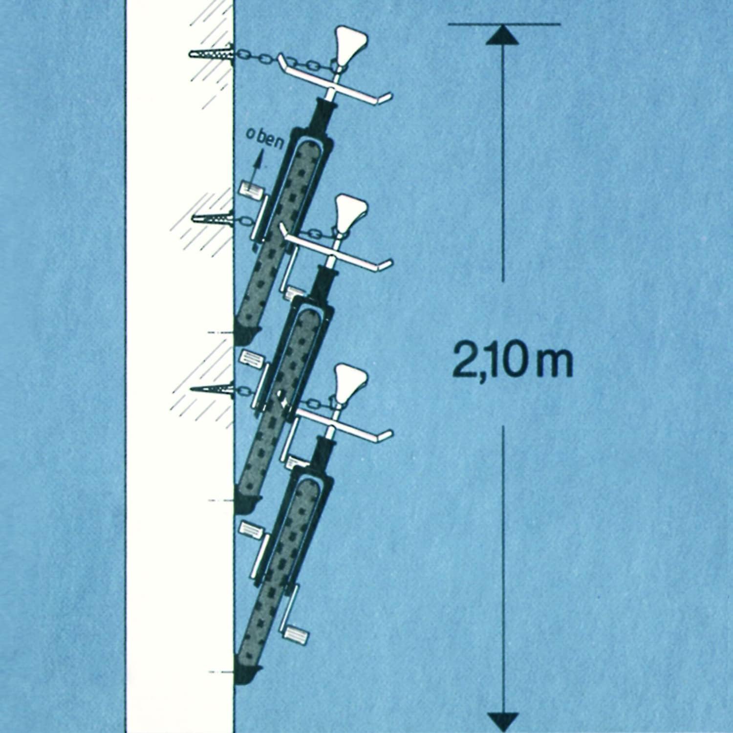 - Mehr Platz im Keller oder in der Garage: bei einer Wandhöhe von 2,1 m sind bis zu 3 Fahrräder übereinander möglich