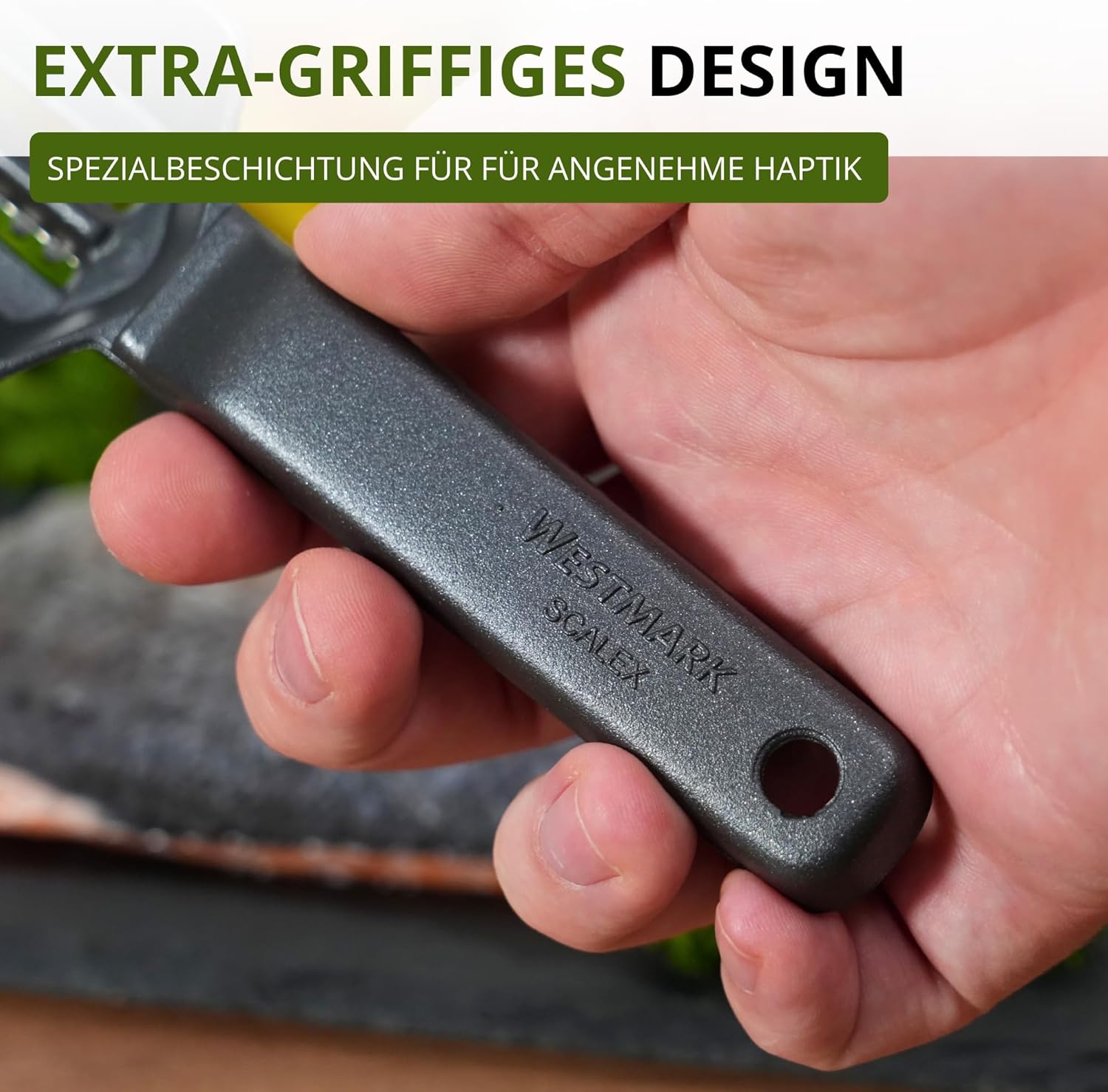 - SCHNELL & SAUBER – Der Westmark Fischentschupper Scalex entfernt Fischschuppen mühelos, ohne das Fischfleisch zu beschädigen. Perfekt für die Zubereitung von frischem Fisch– ideal für Küche & Gastronomie.