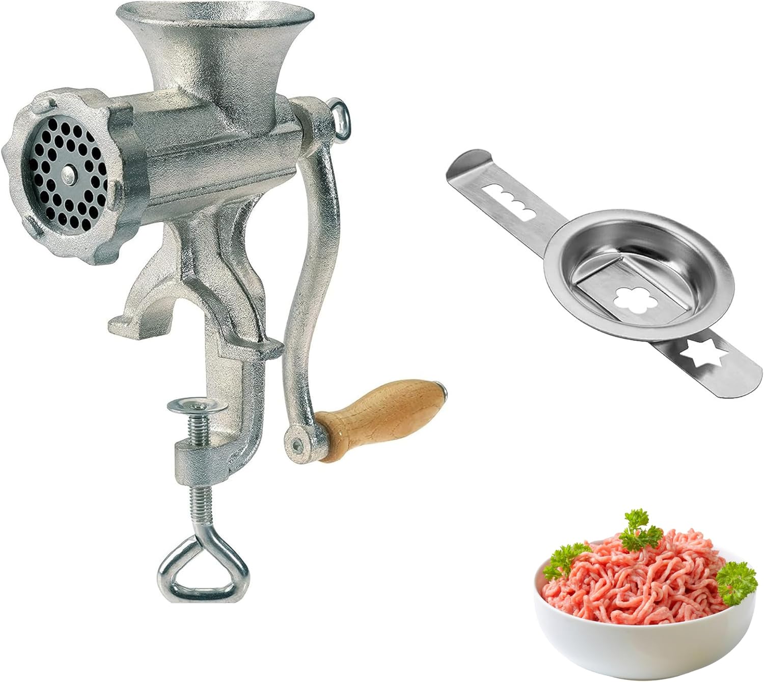 - Fleischwolf zur Tischmontage und mit Holzgriff, fester Halt an Tisch- und Arbeitsplatten durch Schraubzwinge, kein Verkratzen empfindlicher Oberflächen durch Kunststoff-Unterlegscheibe, für Gastronomie oder zuhause