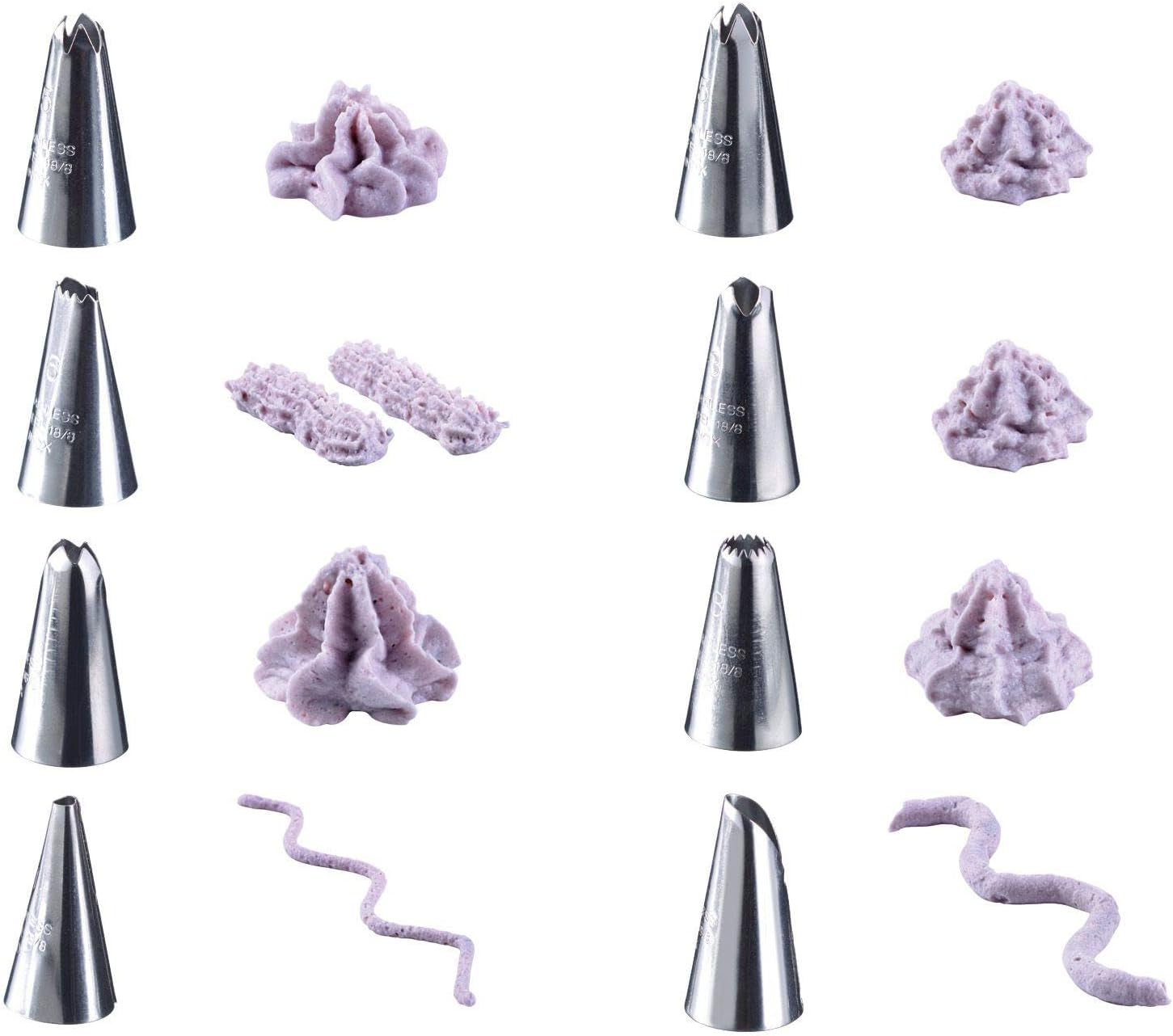 • Klassische Edelstahl-Gebäckpresse mit 8 Edelstahl-Formscheiben zum Herstellen von Plätzchen und Spritzgebäck, auch als Dekorierspritze für Kuchen und Muffins verwendbar dank 8 Edelstahl-Formtüllen und Adapter
