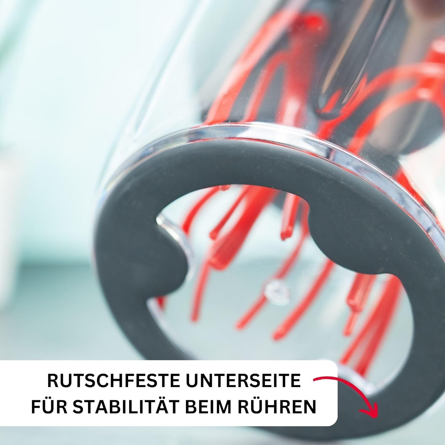 - Transparenter Becher zum schnellen Überprüfen der aktuellen Konsistenz, Deckel mit Quirl-Einsatz leicht zu öffnen und zu schliessen, für schnelles Hinzufügen weiterer Zutaten