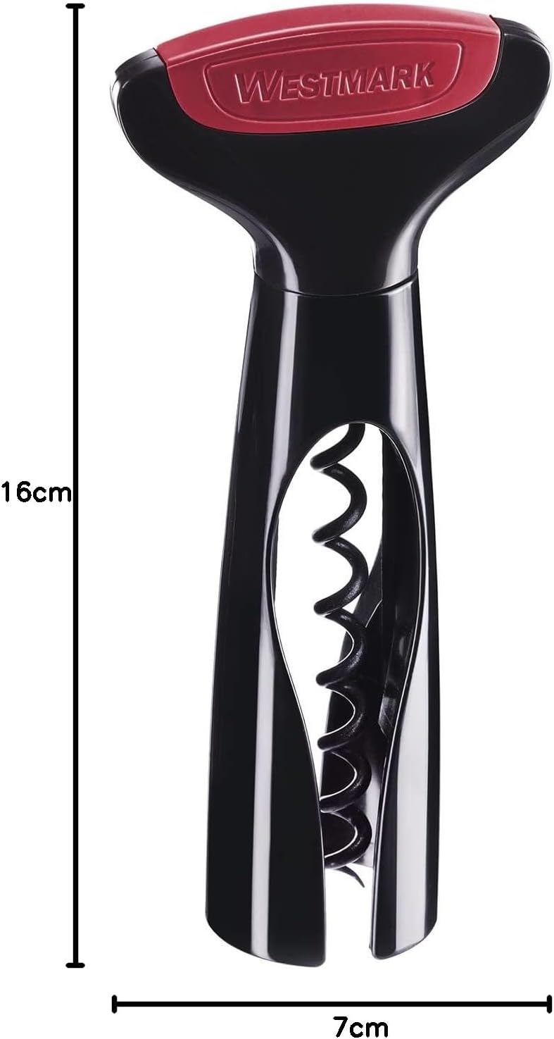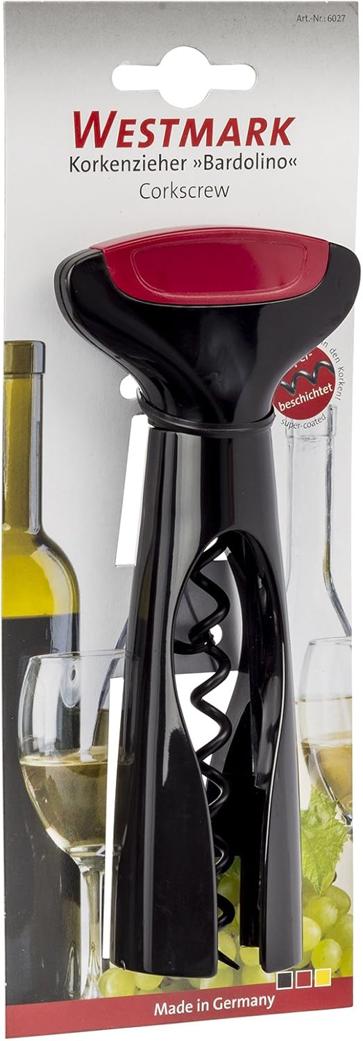 - Lieferumfang: 1x Westmark Korkenzieher, Bardolino, Masse: 7 x 16 x 3,9 cm, Gewicht: 70 Gramm, Material: Kunststoff/Stahl, Farbe: Schwarz/Rot, 60272270