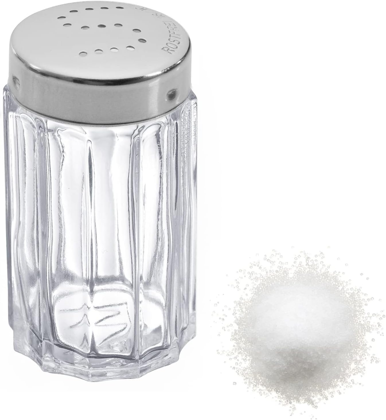 - Salzstreuer aus Glas und Edelstahl zum Würzen beim Kochen und bei Tisch