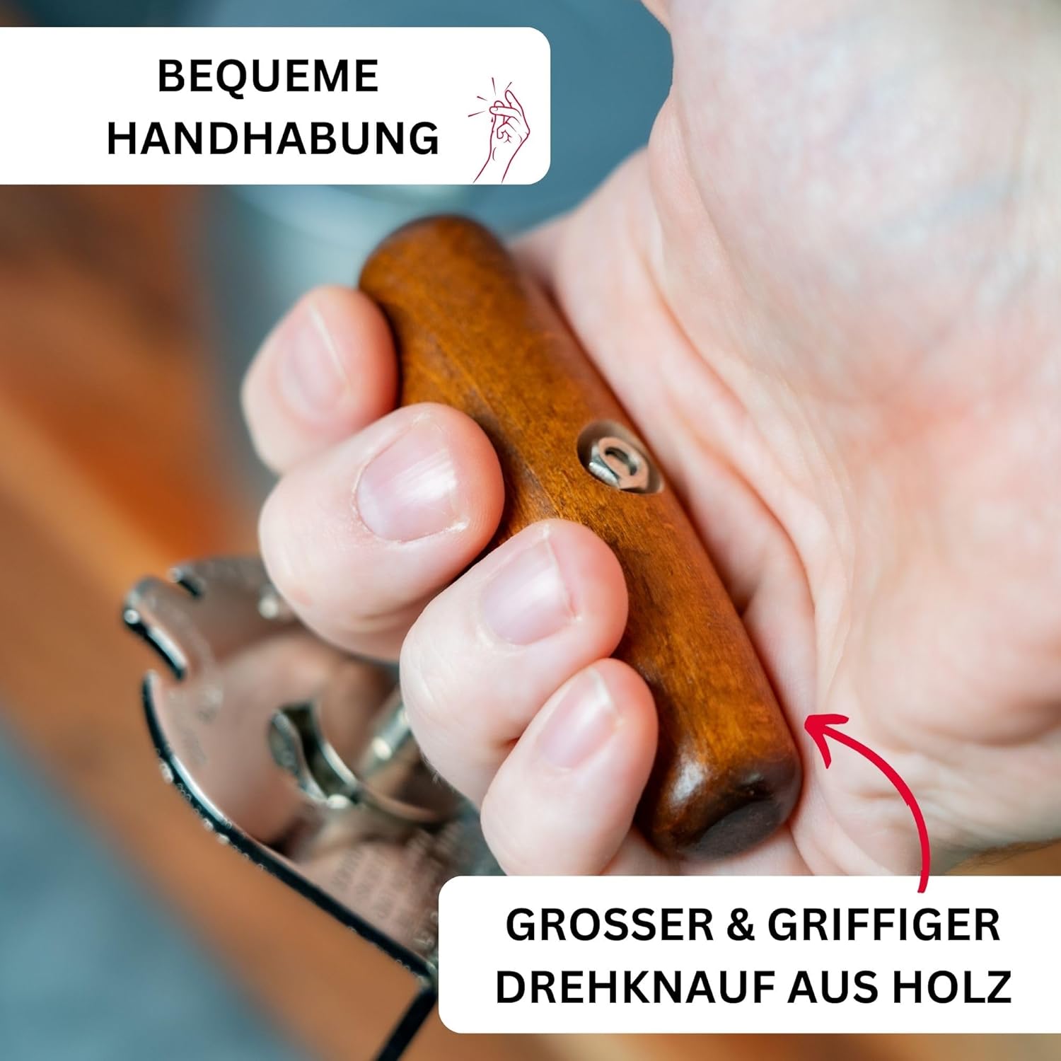 • Besonderheit: kompakte Abmessungen für leichtes Verstauen in der Schublade, gute Handhabung durch grossen, griffigen Drehknauf aus Holz