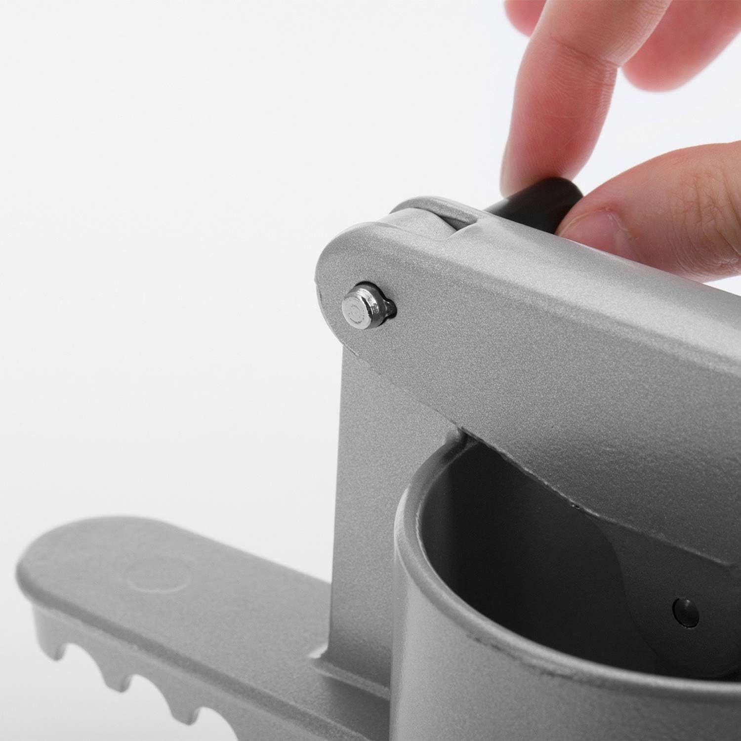 - Grosser Pressbehälter, Füllvolumen ca. 250 ml, traditionelle Lochung für Spätzle wie handgeschabt (längliche Schlitzlochung ca. 7mm), die langen Hebelarme ermöglichen eine optimale Kraftübertragung für einfaches, schnelles Pressen von Spätzleteig, Kartoffeln, Früchten oder Eis