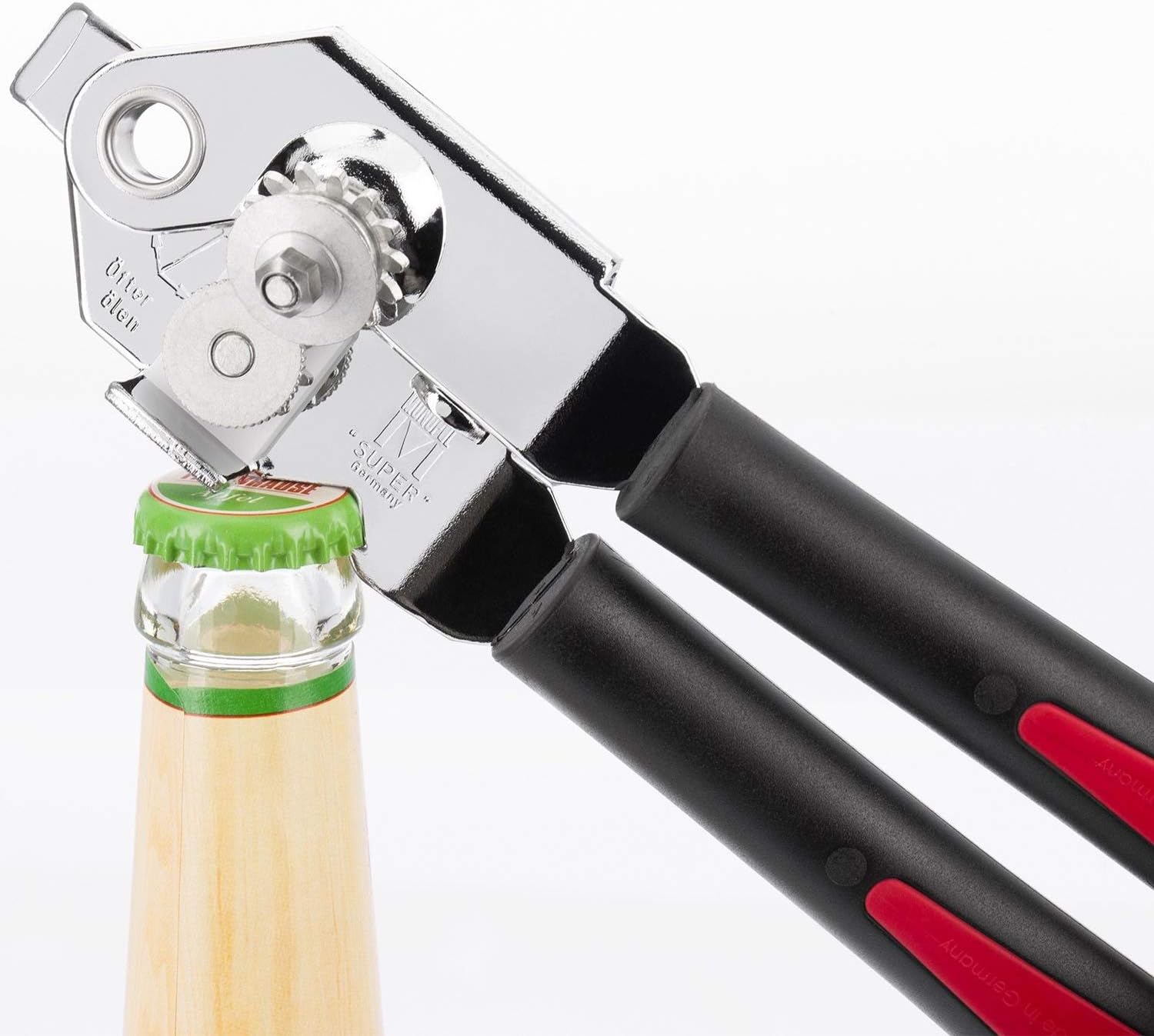 - Lieferumfang: 1x Westmark Zangendosenöffner, Gallant Super, 5 Jahre Garantie, Masse: 22 x 6 x 7,5 cm, Gewicht: 260 Gramm, Material: Stahl/Kunststoff (PP, TPE), Farbe: Schwarz/Rot, 29412260